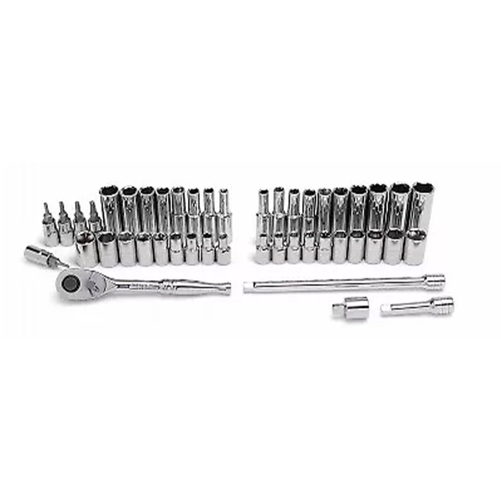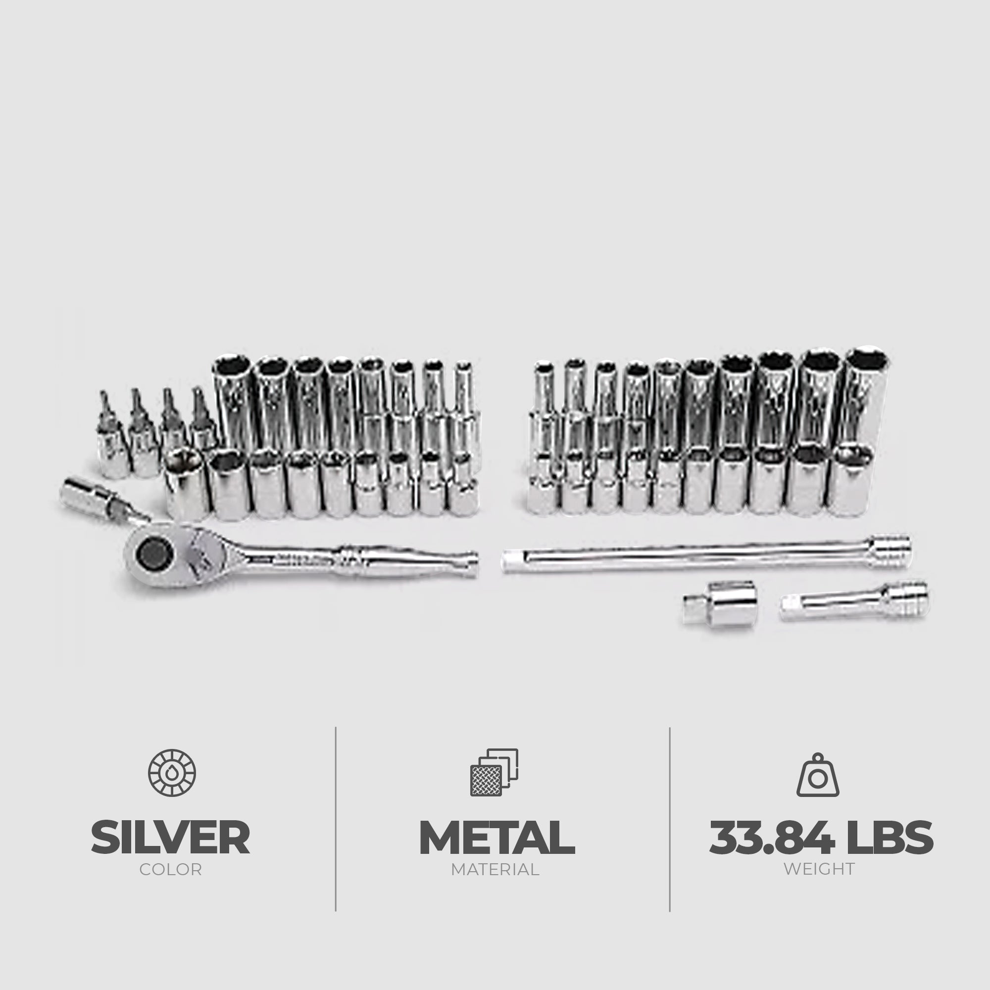 - 45-piece set includes 1/4-inch ratchets, standard and deep sockets, Torx bits, and extensions, providing everything you need for automotive, home, and DIY repairs