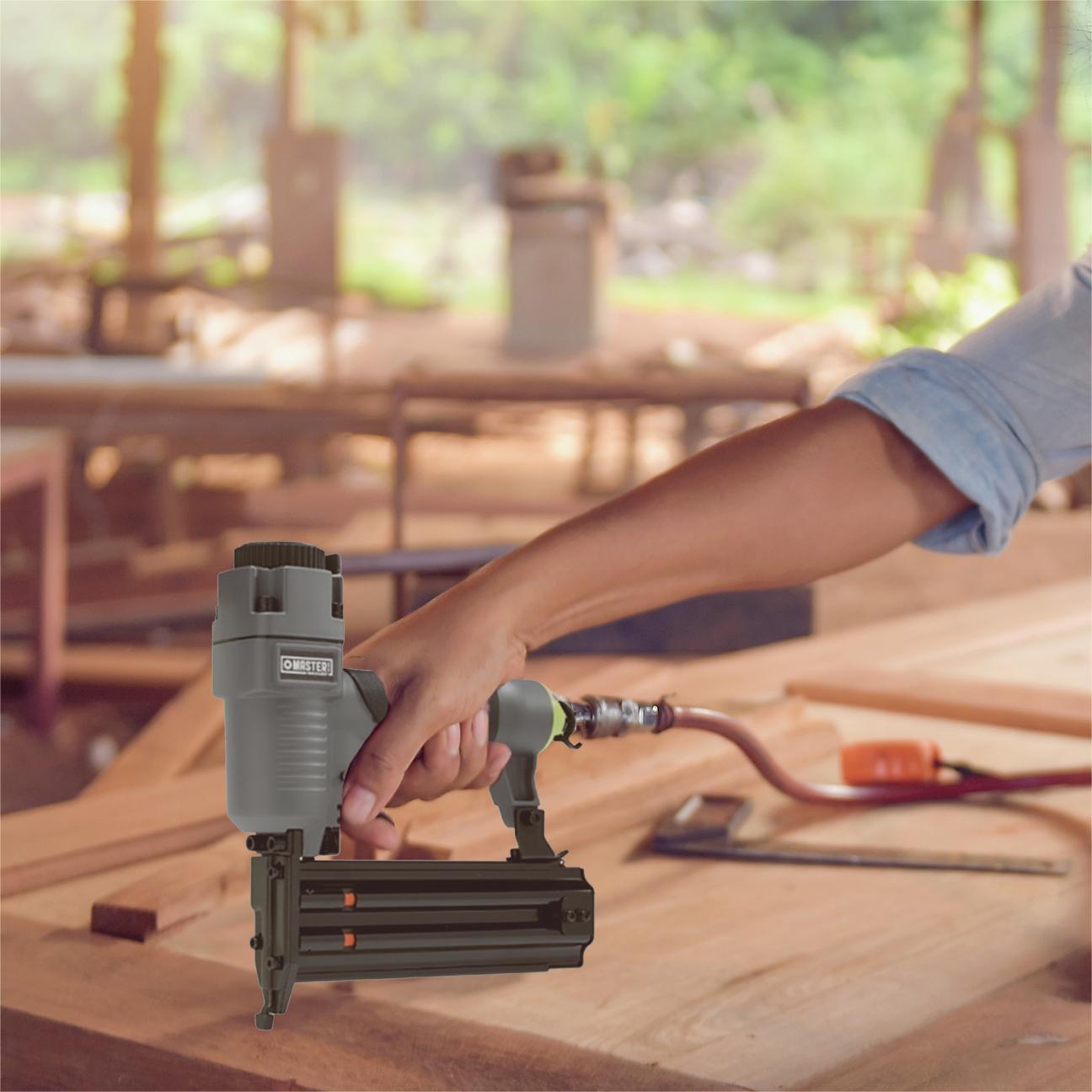 Designed for both hobbyists and professionals, the Master Mechanic Brad Nailer delivers reliable, consistent performance on every project. This Brad nailer is the ideal tool for both professional contractors and DIY enthusiasts. Whether you're installing base molding, crown molding, door casings, or tackling intricate trim work, this versatile brad nailer offers precision and ease of use. Constructed from durable, lightweight die-cast aluminum, it ensures maximum comfort and long-lasting performance, allowing you to work on extended projects without experiencing fatigue.