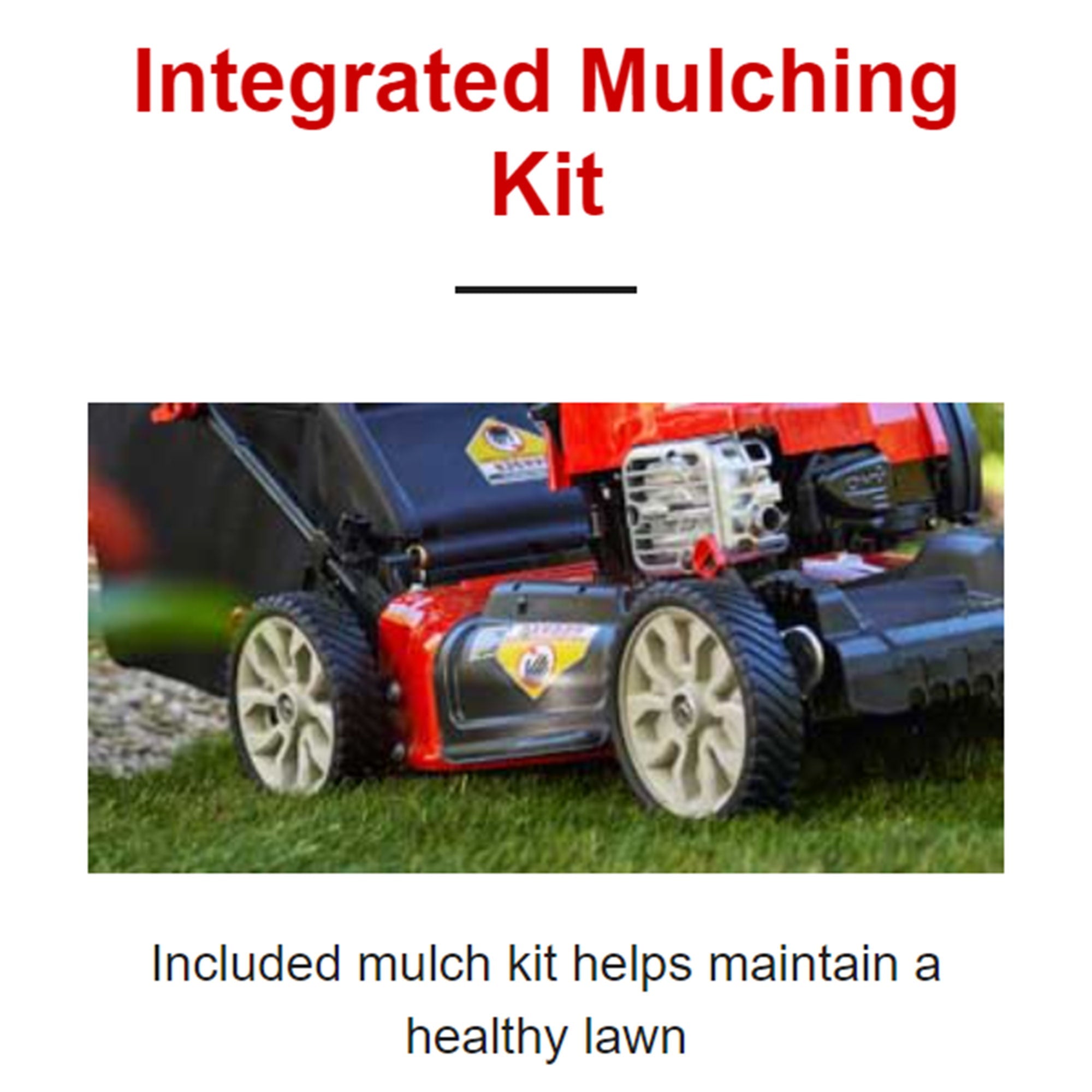• 8-inch front and back wheels with rear-wheel drive propel the mower forward, making it easy to maneuver back and forth and take turns