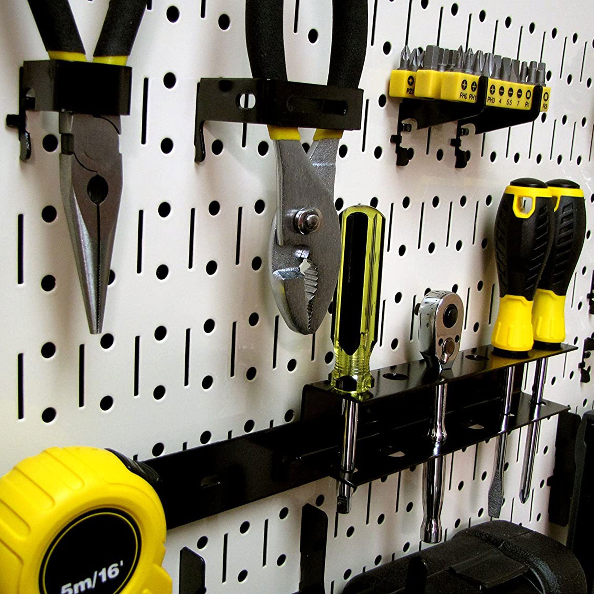- Heavy-duty wall-mounted pegboard organizers are perfect for storing and organizing tools in garage, sheds, and other work areas