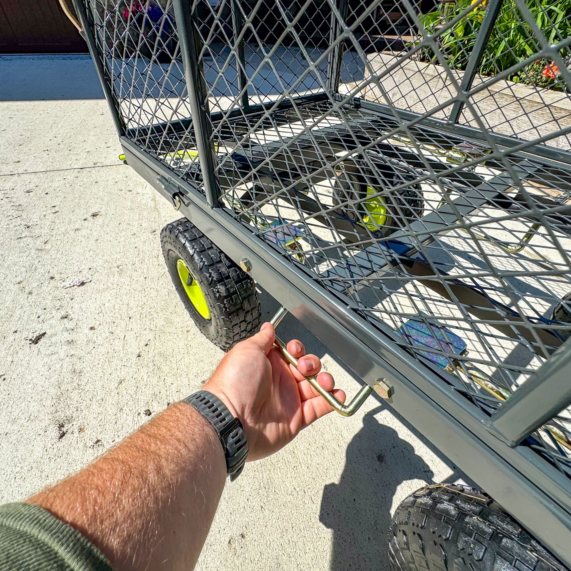 - Easily unload materials with the innovative dual-side dump function, allowing precise placement and saving time and effort during gardening or landscaping projects