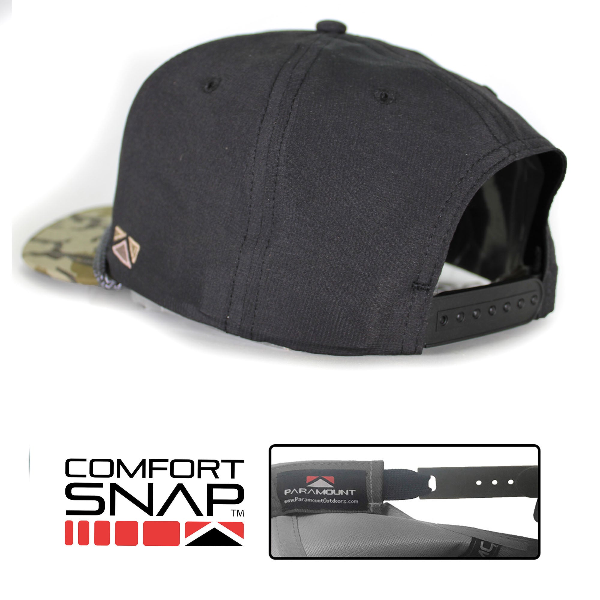 - COMFORT SNAP rear closure couples elastic stretch with adjustability of a snapback