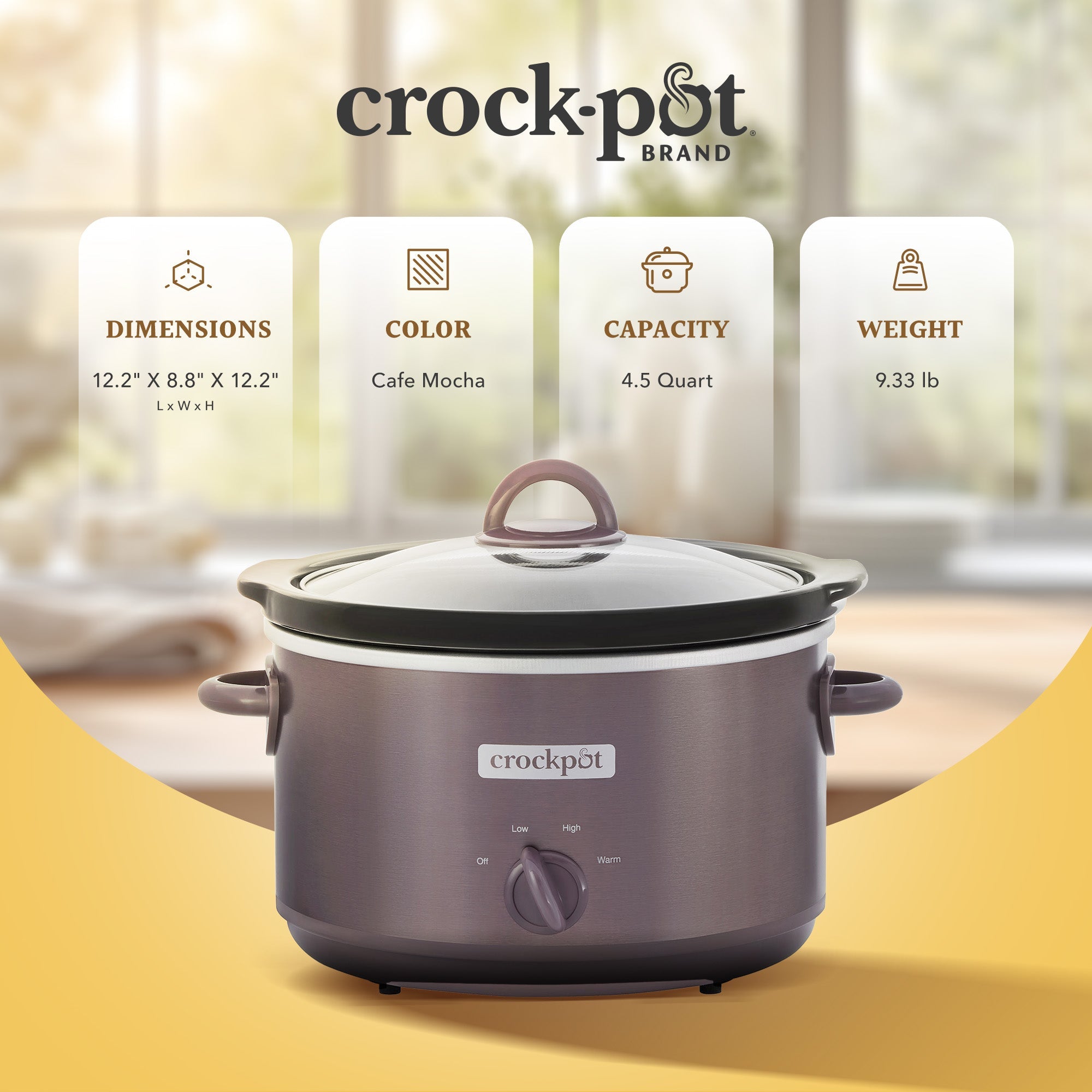 Crock-Pot Manual Design Series 4.5 Quart 3 Setting Slow Cooker, Cafe Mocha