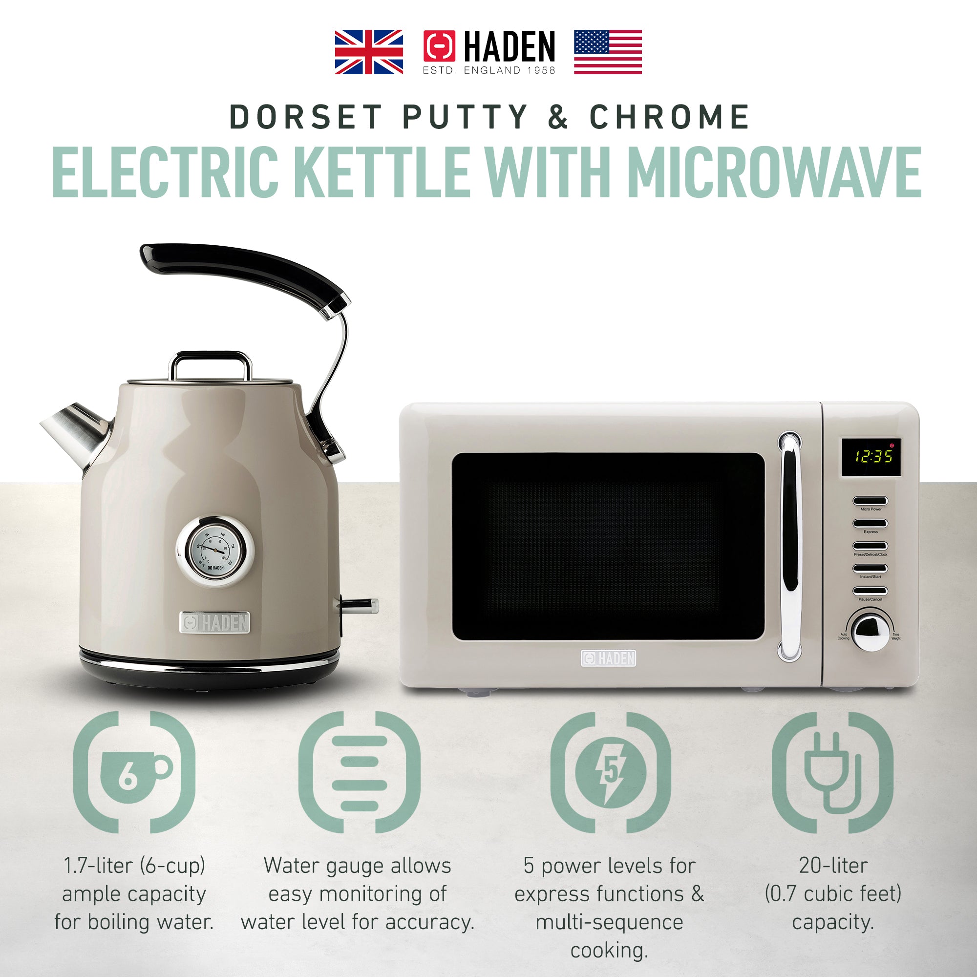 - Elevate your kitchen with this HADEN microwave and Dorset Kettle, where classic style meets contemporary living