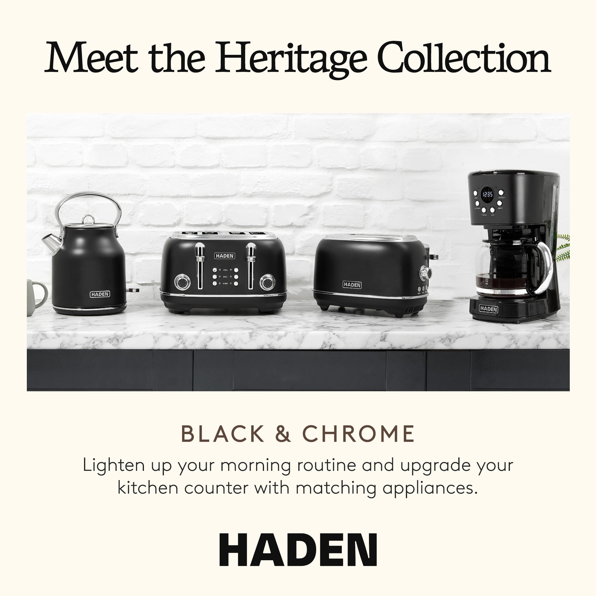 Haden Heritage 1.7 Liter Stainless Steel Electric Water Kettle, Black & Chrome