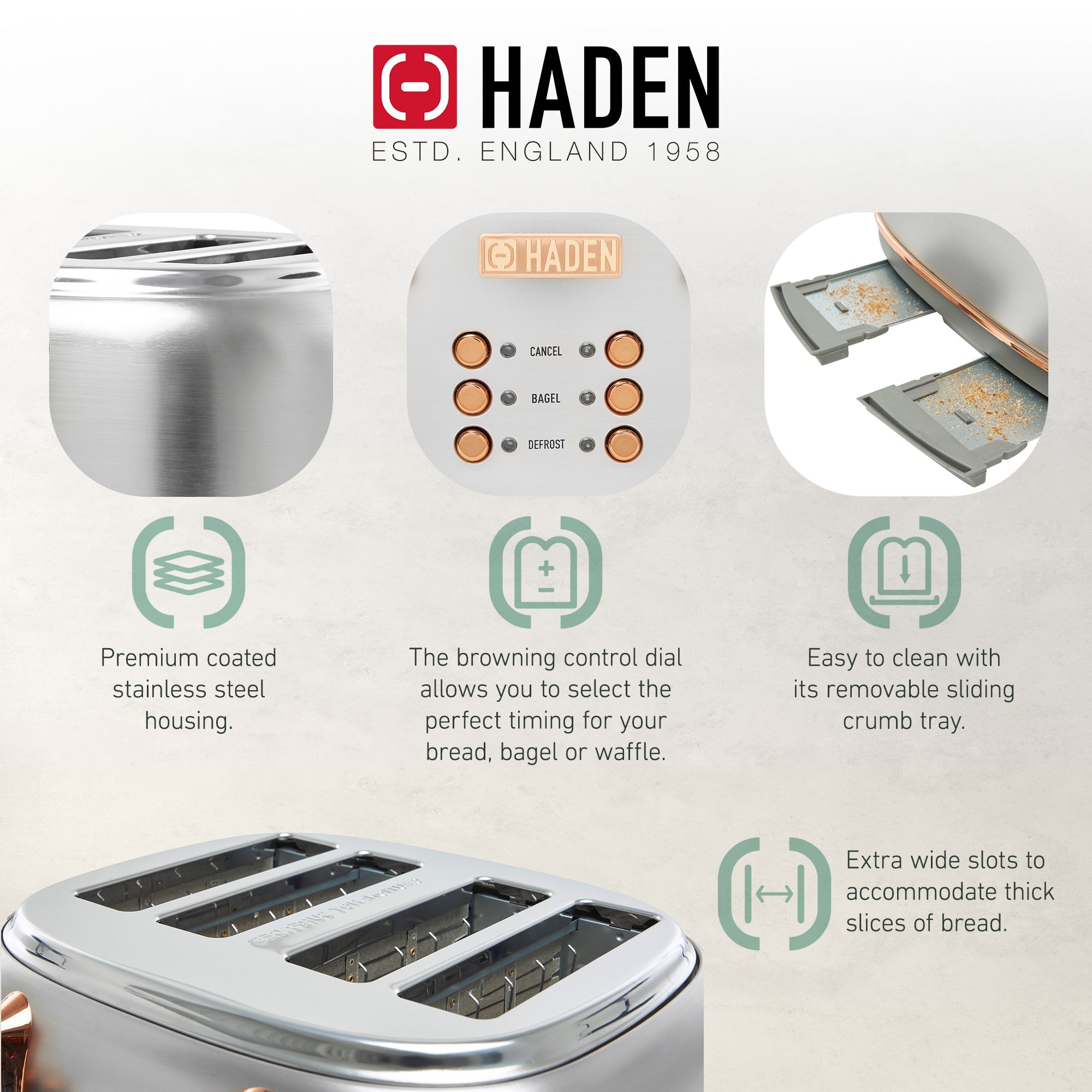 - Haden Heritage 4 Slice Wide Slot Stainless Steel Toaster