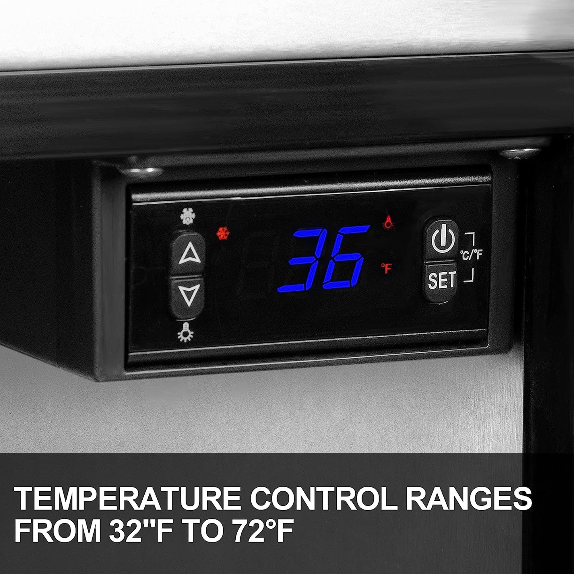 - Digital touch blue LED display for precise temperature control (32 to 72 degrees Fahrenheit) ensuring optimal storage conditions