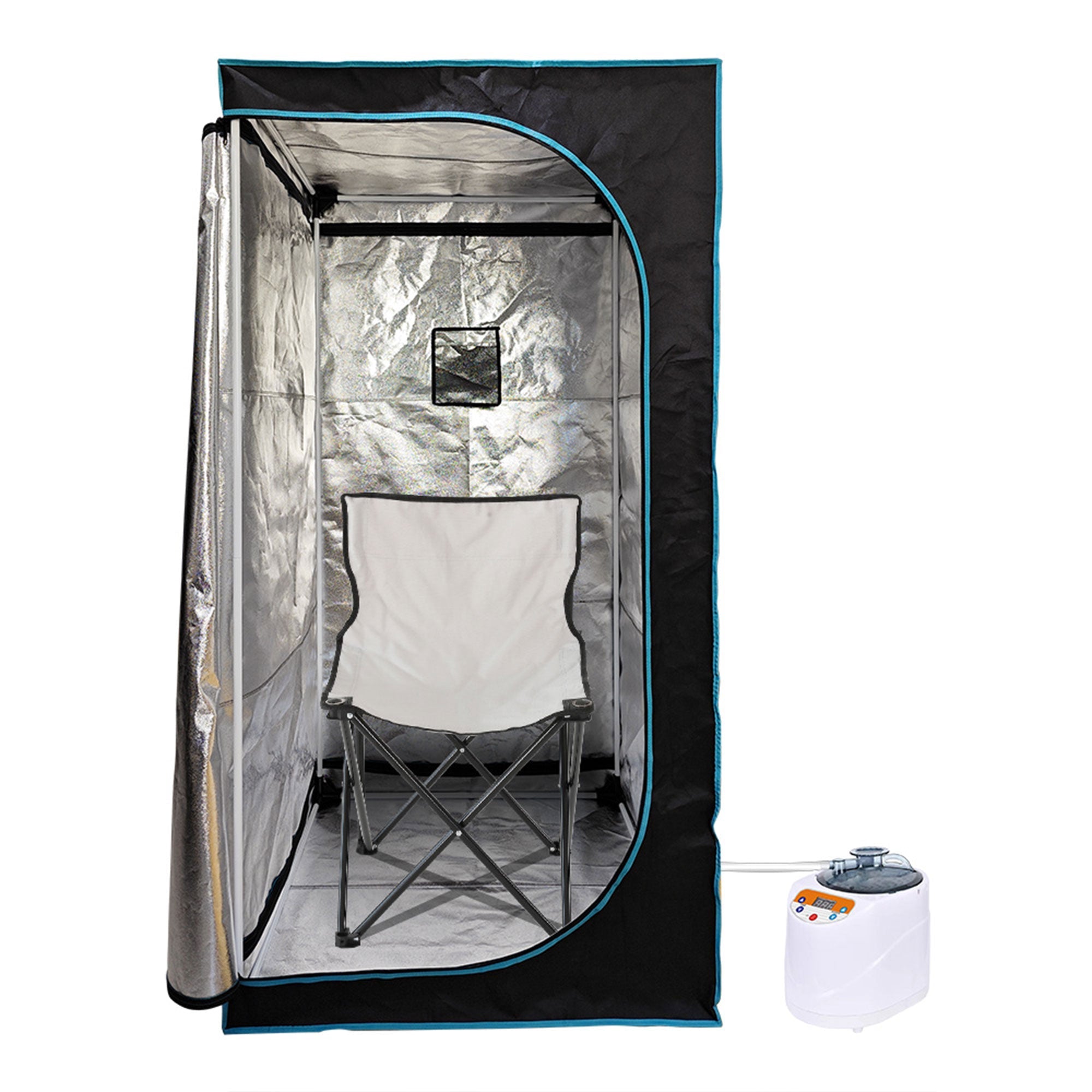 Measuring a spacious 35 by 35 inches, the sauna tent provides ample space to unwind and indulge in the soothing benefits of steam therapy. The accompanying steamer ensures a consistent and invigorating steam flow, contributing to a deeply satisfying sauna session. The portable nature of the home sauna allows you to set it up in any room, transforming your living space into a personal oasis of tranquility. Crafted with convenience in mind, this portable sauna boasts a detachable frame for easy assembly and disassembly, allowing you to store it effortlessly when not in use. The foldable chair adds convenience, providing comfortable seating during your relaxation sessions. With a remarkable weight capacity of up to 275 pounds, the foldable chair ensures a sturdy and secure seating experience for users of various body types. Managing your steam sauna experience is a breeze with the included remote control. Adjust the temperature, set the timer, and tailor the box sauna environment to your preferences without having to leave the soothing warmth of your session. The user-friendly remote control puts you in control, enhancing the overall relaxation experience.