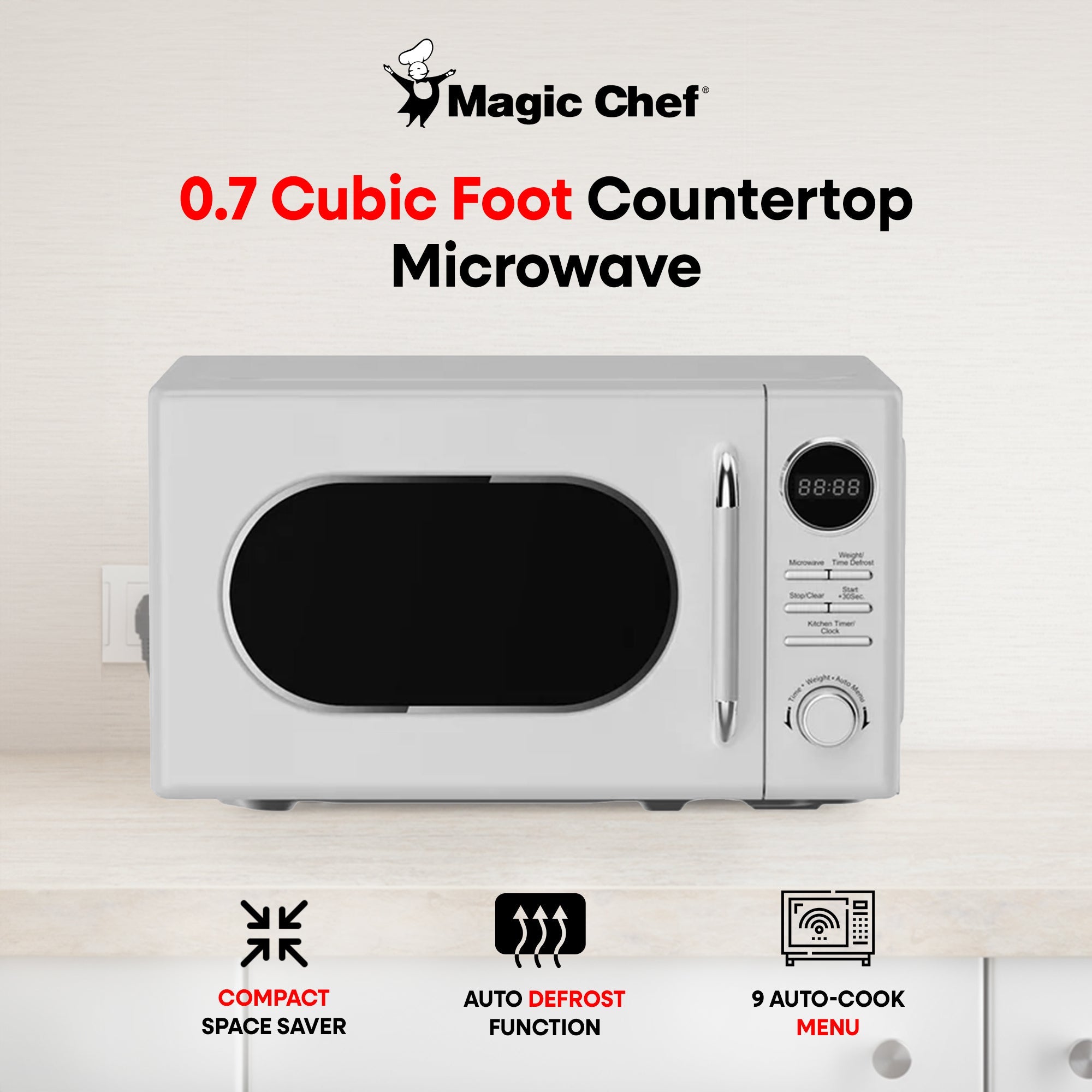 Magic Chef 0.7 Cubic Feet 700W Small Classic Retro Countertop Microwave, White