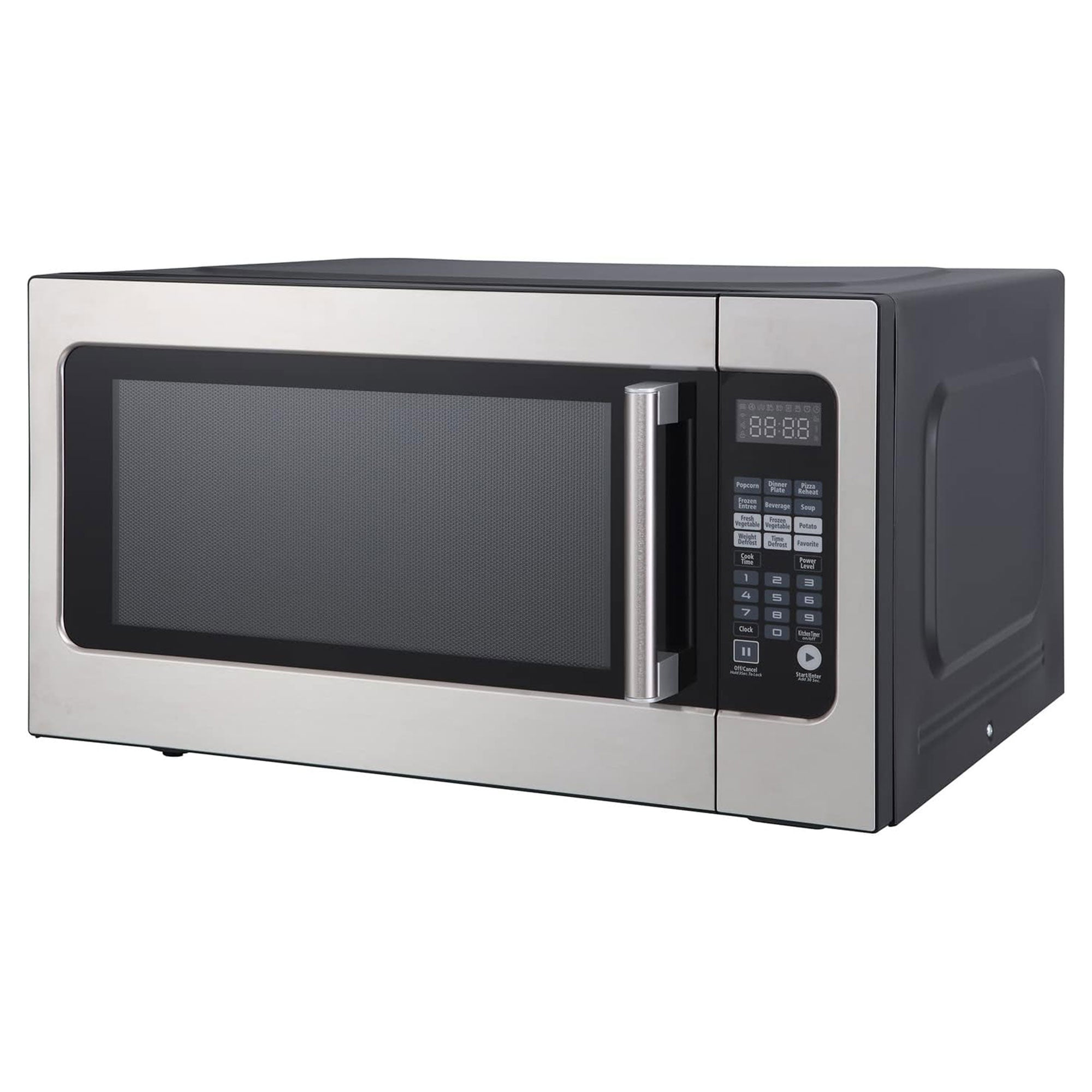 Regardless of your situation, this microwave oven will work for you. This countertop appliance has many cool features, including 9 programmed cooking modes and express cooking functions. With 10 power levels at your command, versatility reigns supreme. From gentle warming to high-powered cooking, there's no limit to the culinary wonders you can conjure. When time is of the essence, the weight and time defrost options stand ready to thaw cold or frozen items with precision and efficiency, ensuring that no ingredient is left out of your culinary masterpiece. With a total power level of 1,200 watts, it’s powerful enough to cook what you need when you need it. This countertop microwave oven packs a punch and offers versatile style and function for any large or small kitchen. With its large design, this household kitchen microwave would fit perfectly on a countertop or any tabletop. Plus, it’s easy to clean after use. The stainless-steel exterior can be sprayed with mild detergent, and the gray-black ceramic interior is easy to clean with a damp cloth. You can also remove the turntable inside and wash it in the dishwasher for effortless cleaning, so your counter microwave stays looking new.