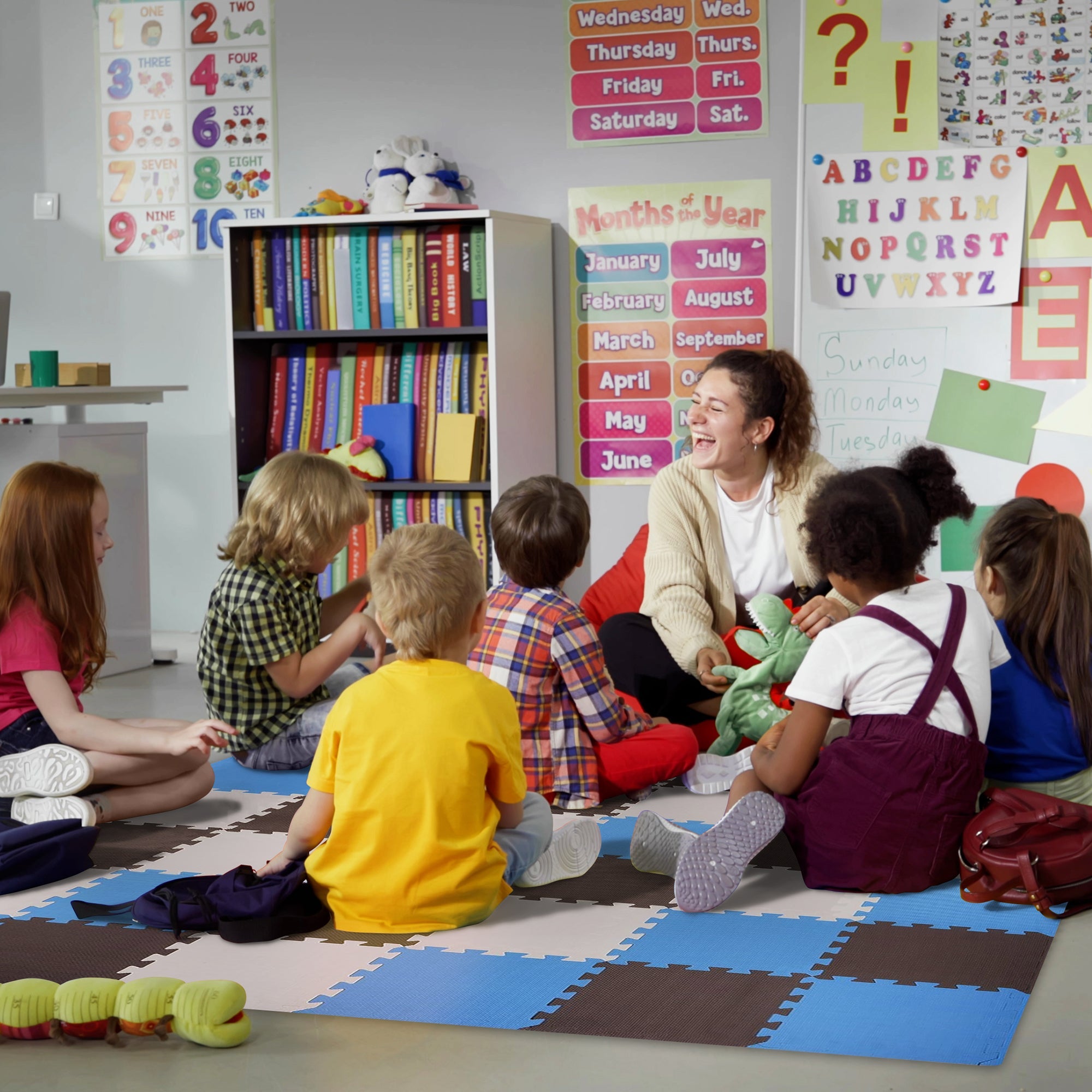 Transform your daycare, home playroom, or after-school program with the BalanceFrom Fitness 16-Tile Extra Thick Interlocking Puzzle EVA Foam Exercise Play Mat.