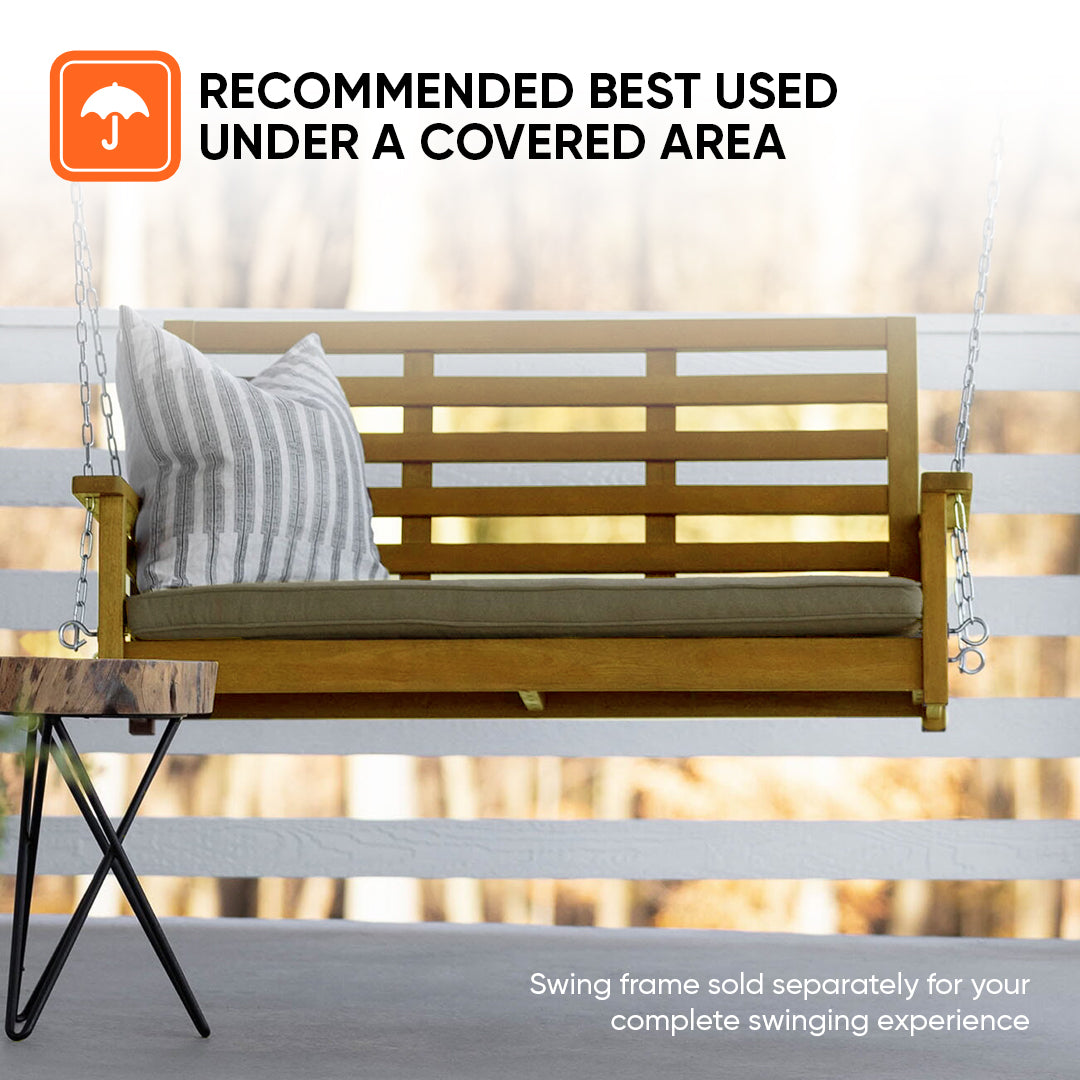 • Swing into summer in comfort and style with this aesthetically cushioned hardwood swing for outdoor relaxation