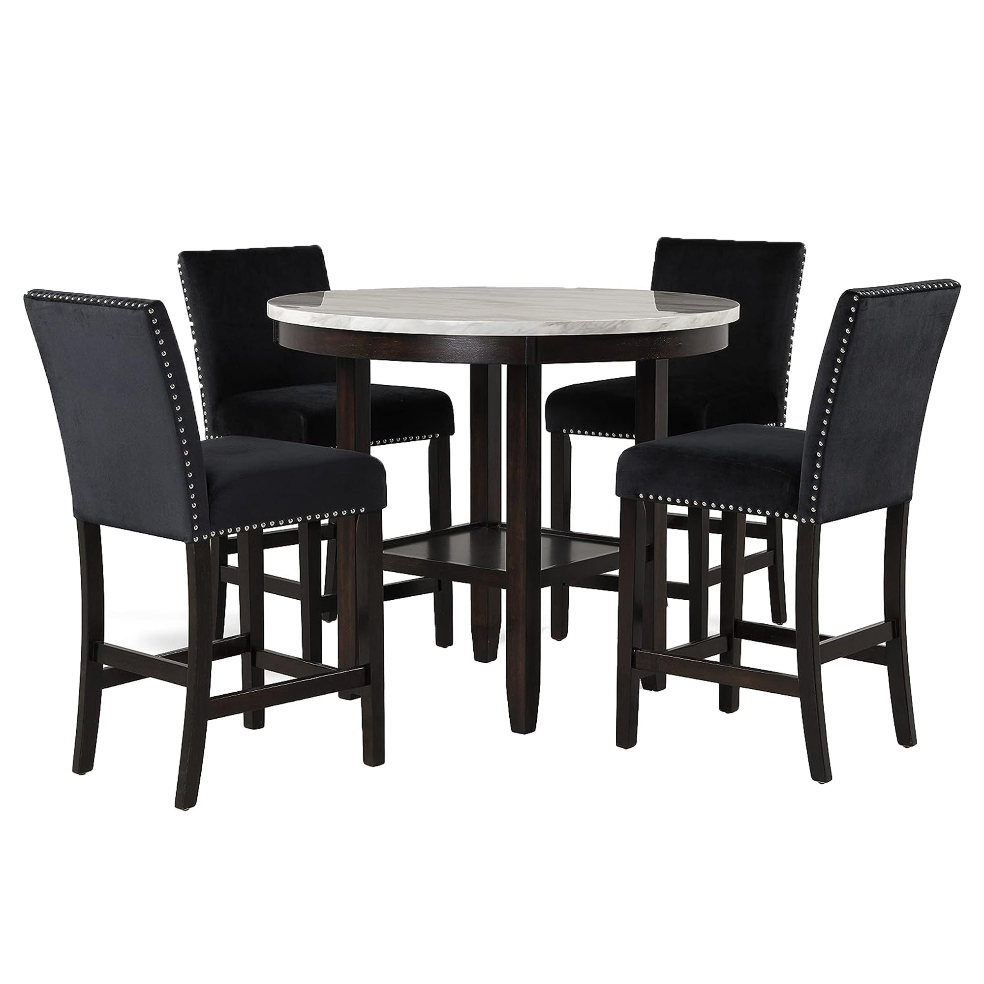 New Classic Furniture Celeste 42" Faux Marble Round Table, & 4 Chair Set, Black