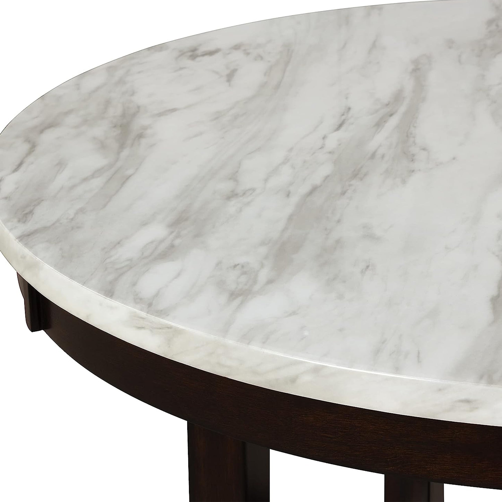 - Indulge in timeless elegance with the Celeste faux marble round counter table and chair set; Features a heatproof and waterproof white and black faux marble countertop that adds a touch of luxury and sophistication to any space