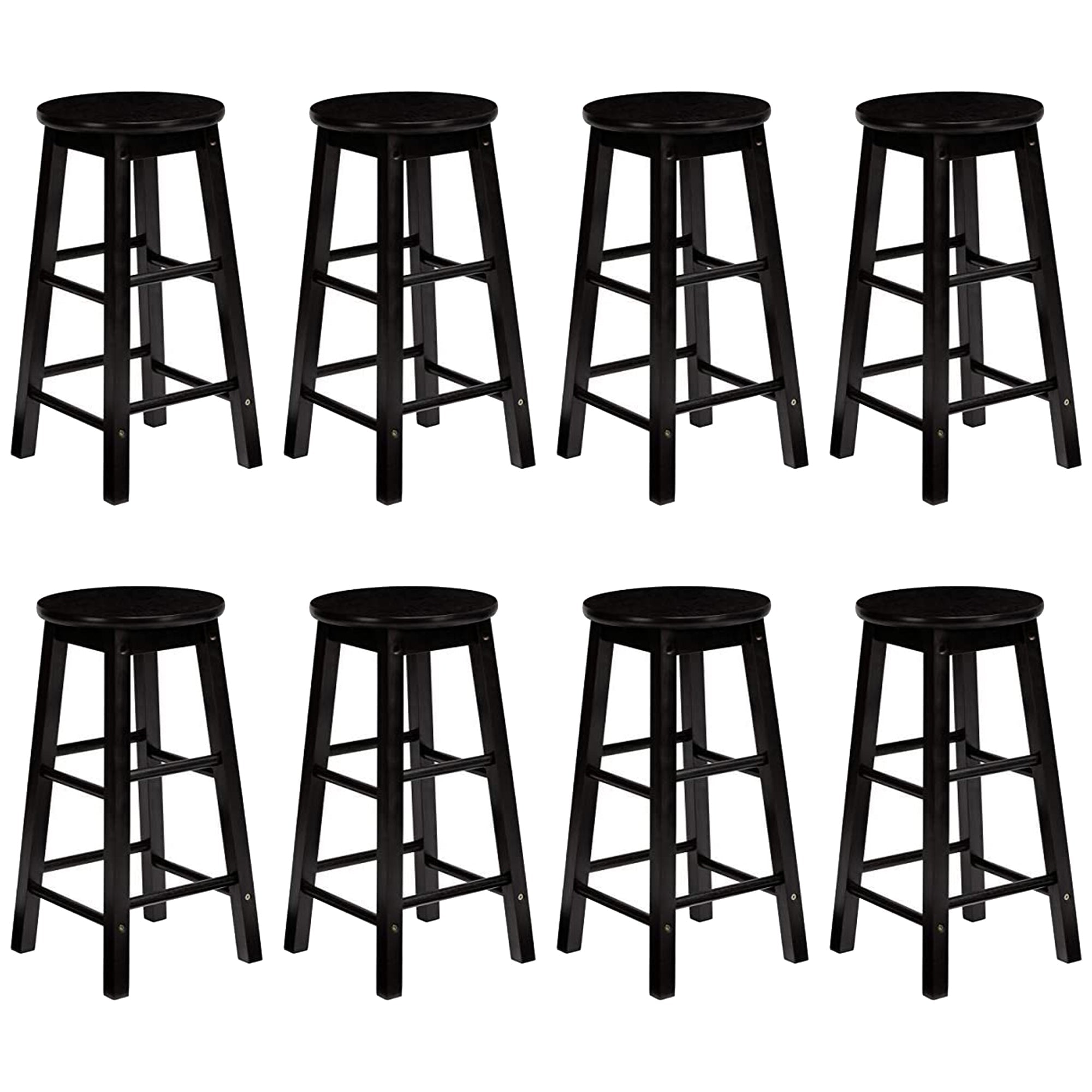 These stools are ideal for all occasions, whether paired with a small dining space that you already have, adding seating to your countertop, or casual entertaining space. Constructed from sturdy, durable wood, this set of 8 bar stools feature comfortable, round, backless seats that stand 29 inches high, with a classic and modern design that fits in with any existing decor. With 4 well-balanced, square legs, along with 8 built-in bars for your feet, each stool can withstand up to 225 pounds. Good for eating, working, entertaining a few guests, or just sitting around, these stools are a great addition to that new bar, counter height table, or working area. Light assembly is required before you can use these bar stools, with all required hardware included.
