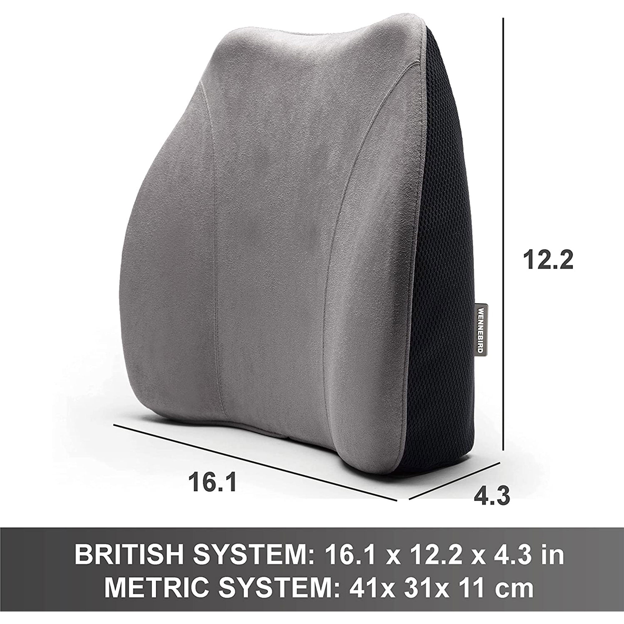 For days at the office and long road trips, the WENNEBIRD Model Q Lumbar Memory Foam Support Pillow relieves back muscles and provides unmatched relaxation.