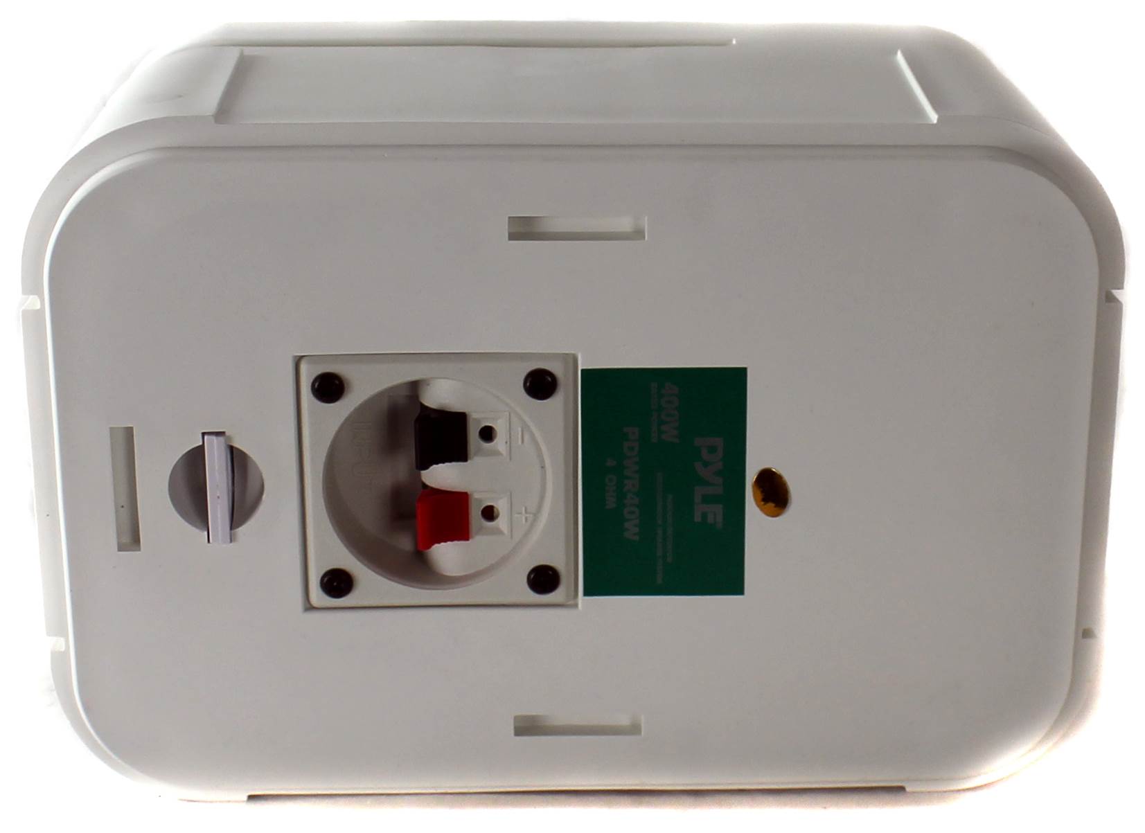 These white Pyle indoor/outdoor waterproof speakers are excellent for use on boats, decks, patios, or by the pool anywhere outdoors. They're completely waterproof, thanks to the heavy duty ASB construction. And they're powerful 400 watts max. A 5.25' aluminum injection cone woofer provides the midbass, while a 1' high compliance Mylar tweeter pushes sweet highs. A capacitor crossover network separates these two channels discretely for a brilliant sound. Connect wires easily and effortlessly using the quick connect speaker terminals. The bass reflex vent boosts the bass response for a deeper, more powerful sound, ultimately delivering a frequency response of 40 Hz to 22 kHz. Mount using the unique spring loaded mounting system. The mesh grills are rustproof. Sold as a pair.