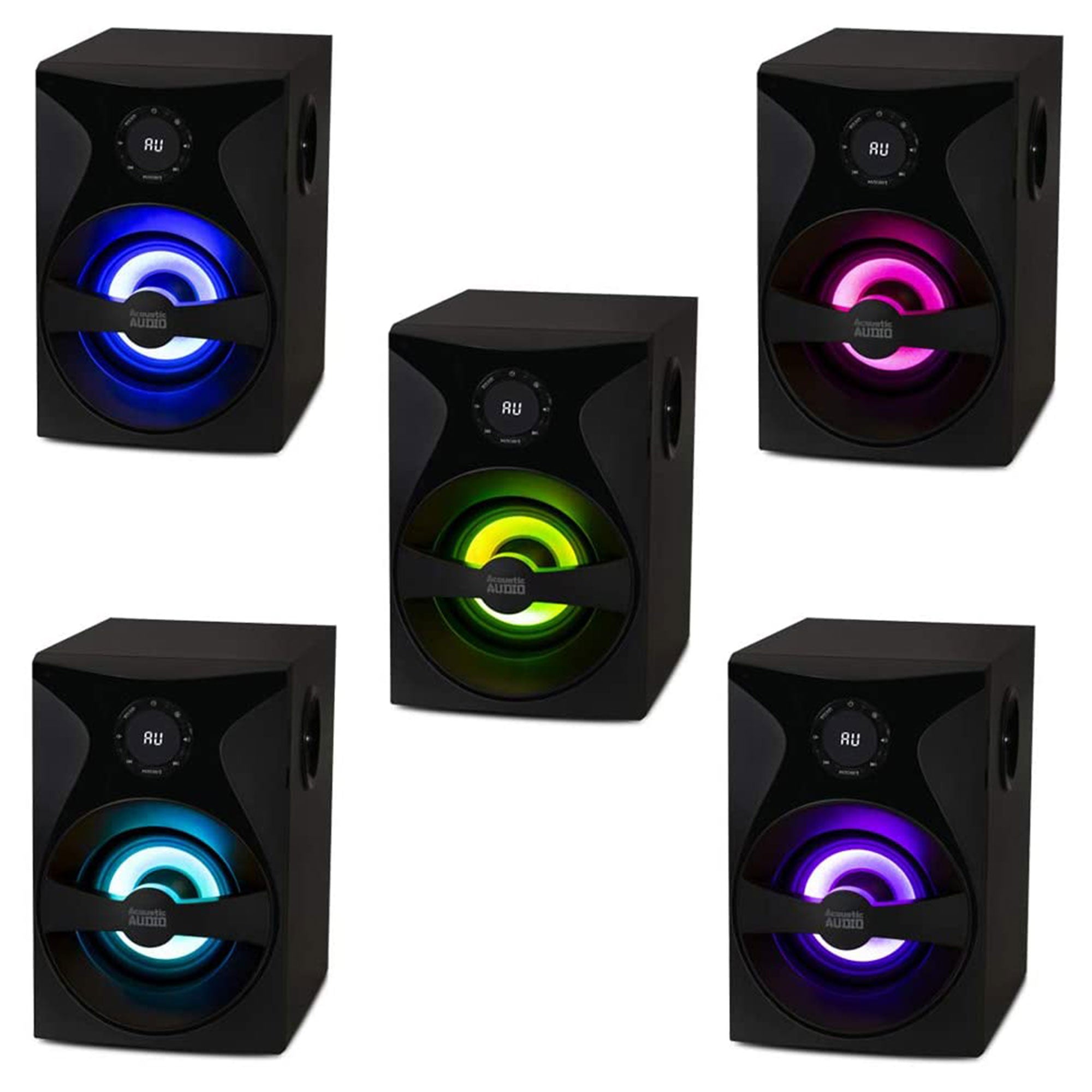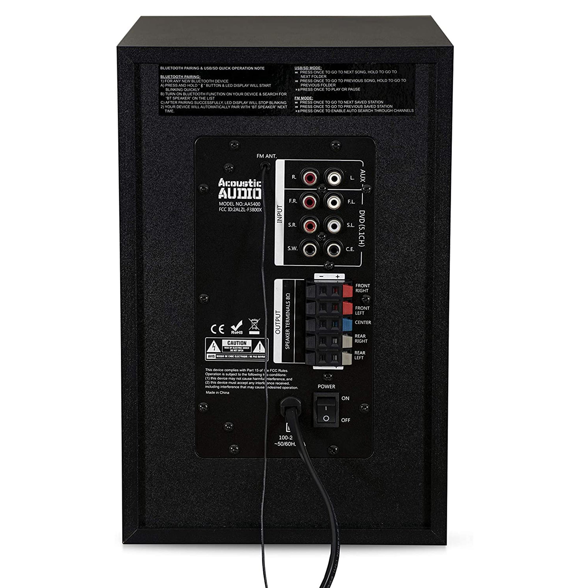 Unwind at home with the Acoustic Audio by Goldwood AA5400 6 Piece Surround Sound System Set Home Theater. You'll hear premium audio quality from this Bluetooth-enabled speaker, whether sharing your favorite song at a party or enjoying karaoke night with friends.