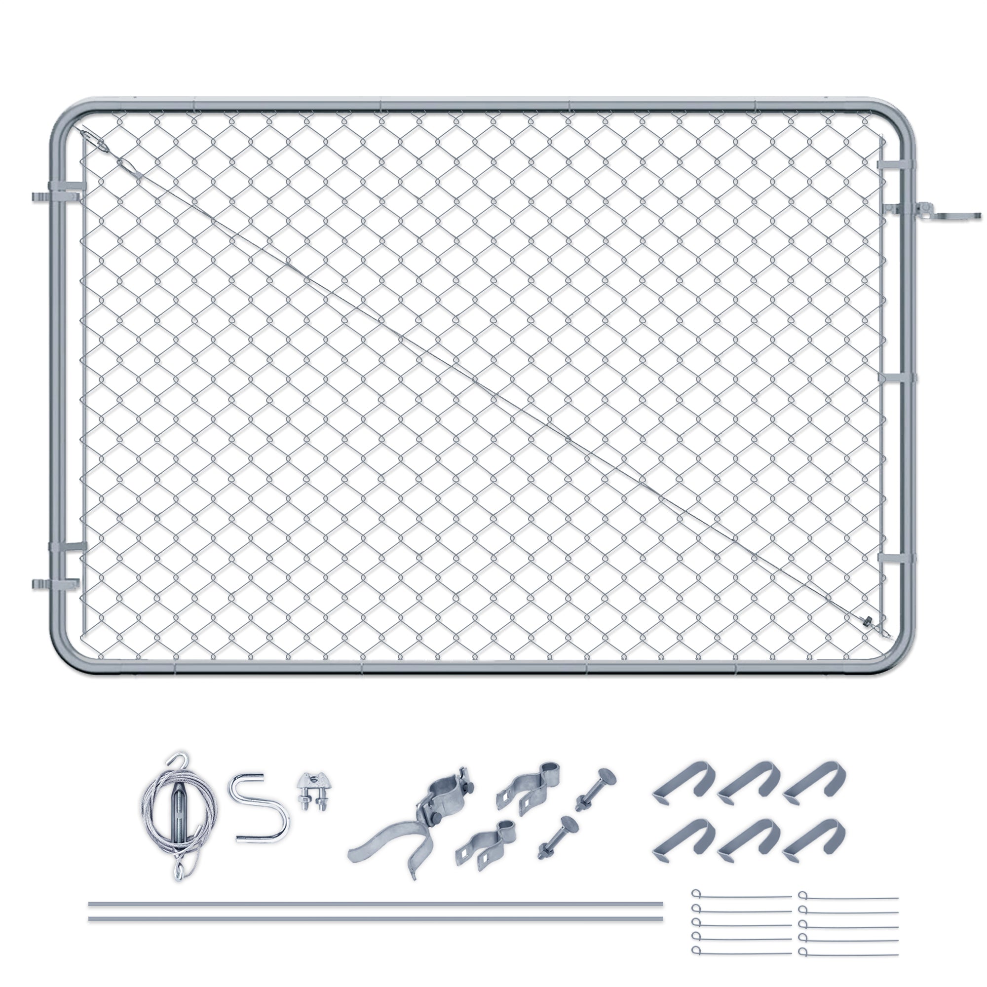 The kit is an all-inclusive gate-building powerhouse, providing you with everything necessary to construct a durable and reliable chain-link walk-through gate. The steel gate frame serves as the sturdy backbone, ensuring longevity and strength. A sleek powder-coated chain link adds both style and corrosion resistance, guaranteeing a gate that stands the test of time.