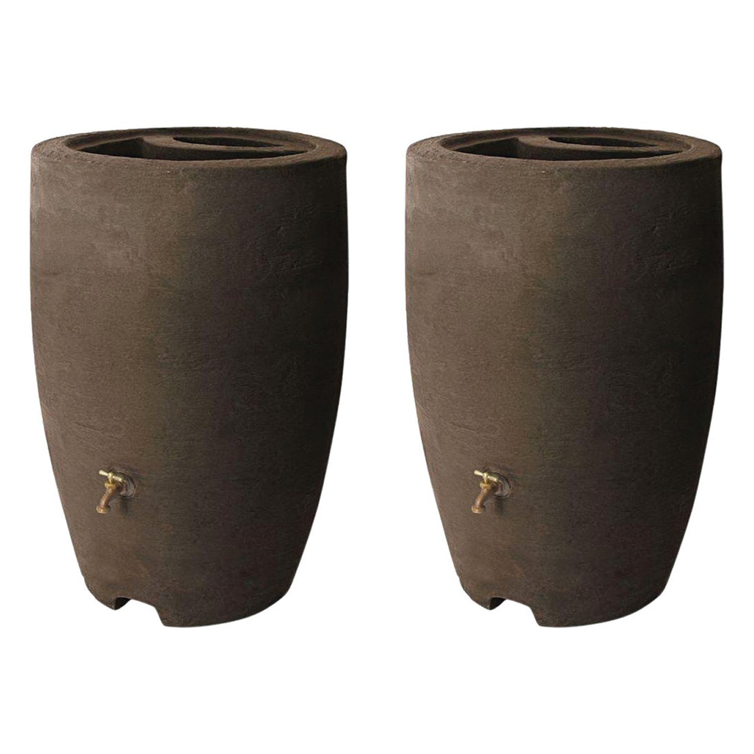 Algreen Athena 50 Gallon Plastic Rain Water Collection Drum Barrel (2 Pack)