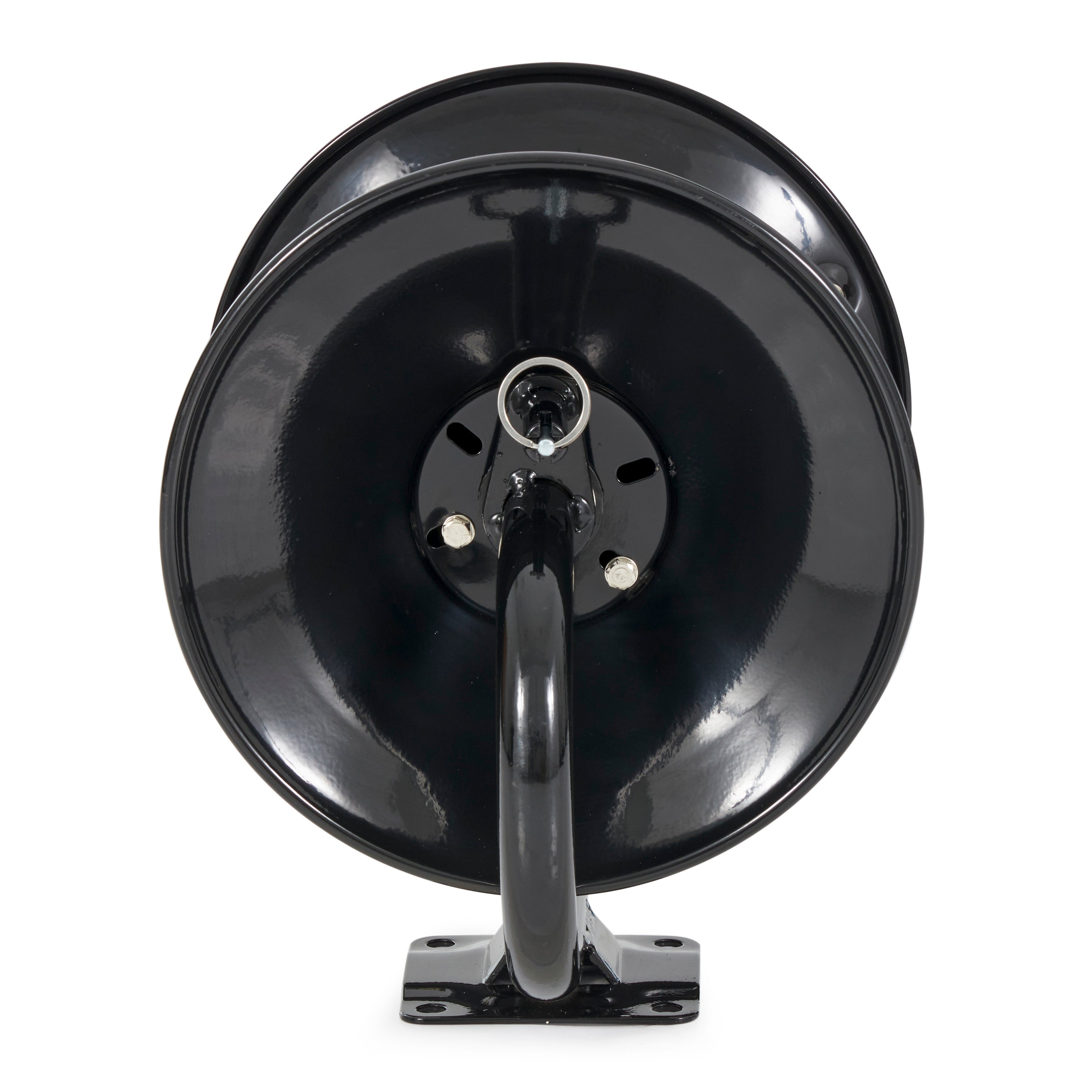 Durable, strong, and featuring a sleek black finish, the Steel Pressure Washer Hose Reel cleans up your equipment while making it easy to transport.
