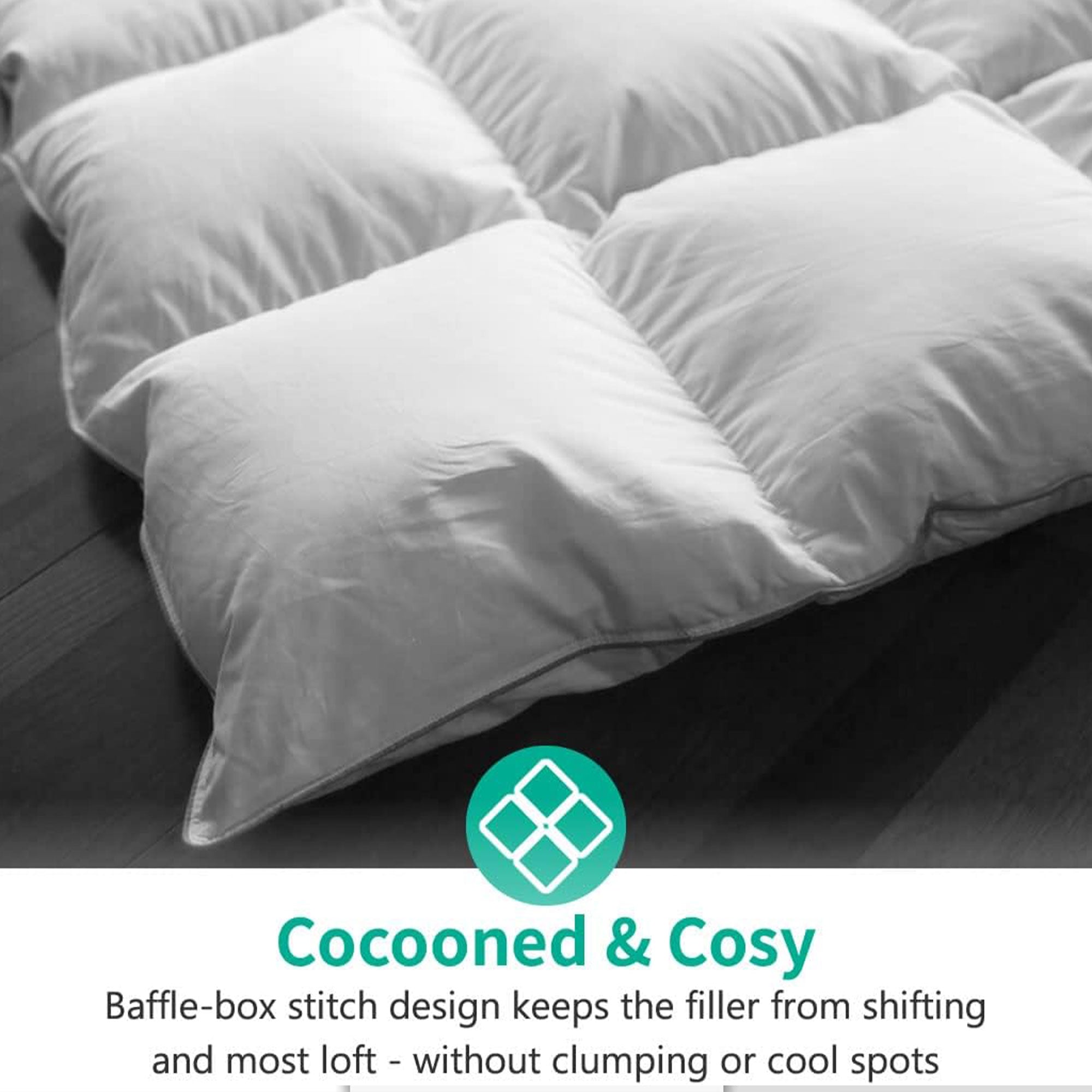 • Experience year-round coziness with our feather down comforter's versatility, perfect for any season, be it spring, winter, autumn, or summer