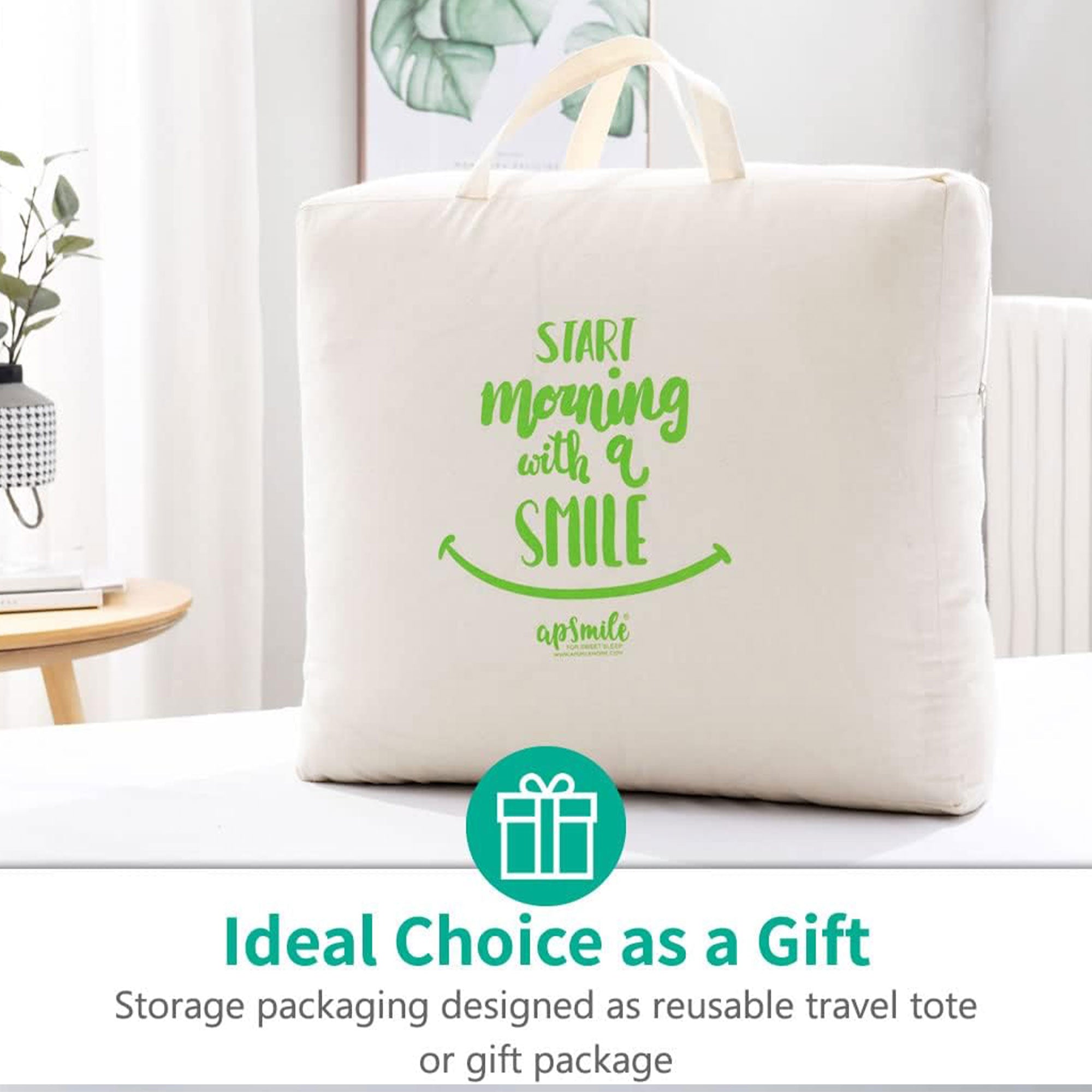 To top it off, each APSMILE Luxurious Feathers Down Comforter comes with a complimentary duvet bag for convenient storage, ensuring that your comforter remains fluffy and ready for use. The cotton package bag also serves as an elegant gift package, making this feather-down comforter the perfect gift for friends and loved ones. Whether for the young or old, women or men, fathers or mothers, APSMILE is a name you can rely on. Upgrade your sleep with the Duvet Comforter from APSMILE.