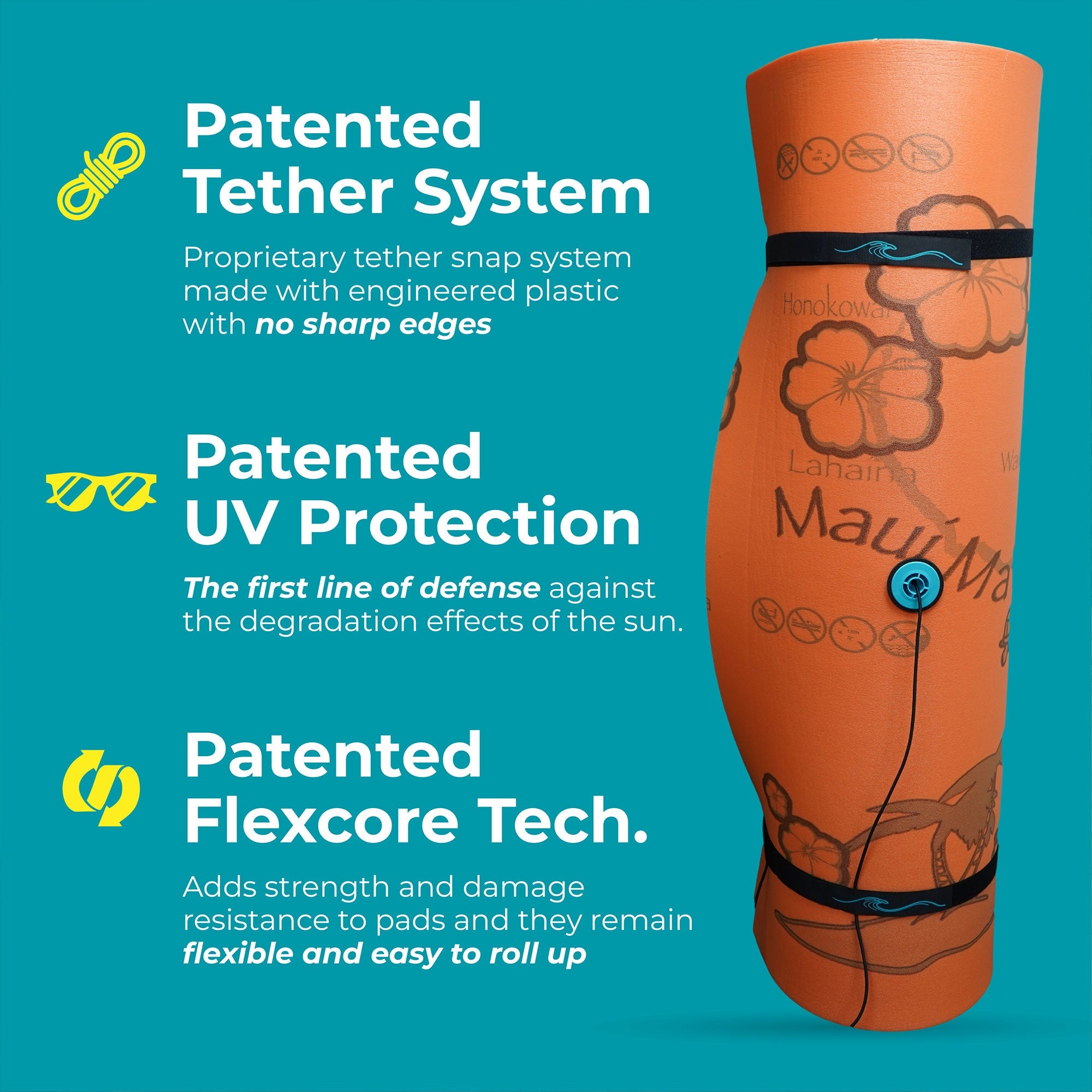 - 2-layer pad with patented FlexCore technology stays flat on the water without absorbing any water