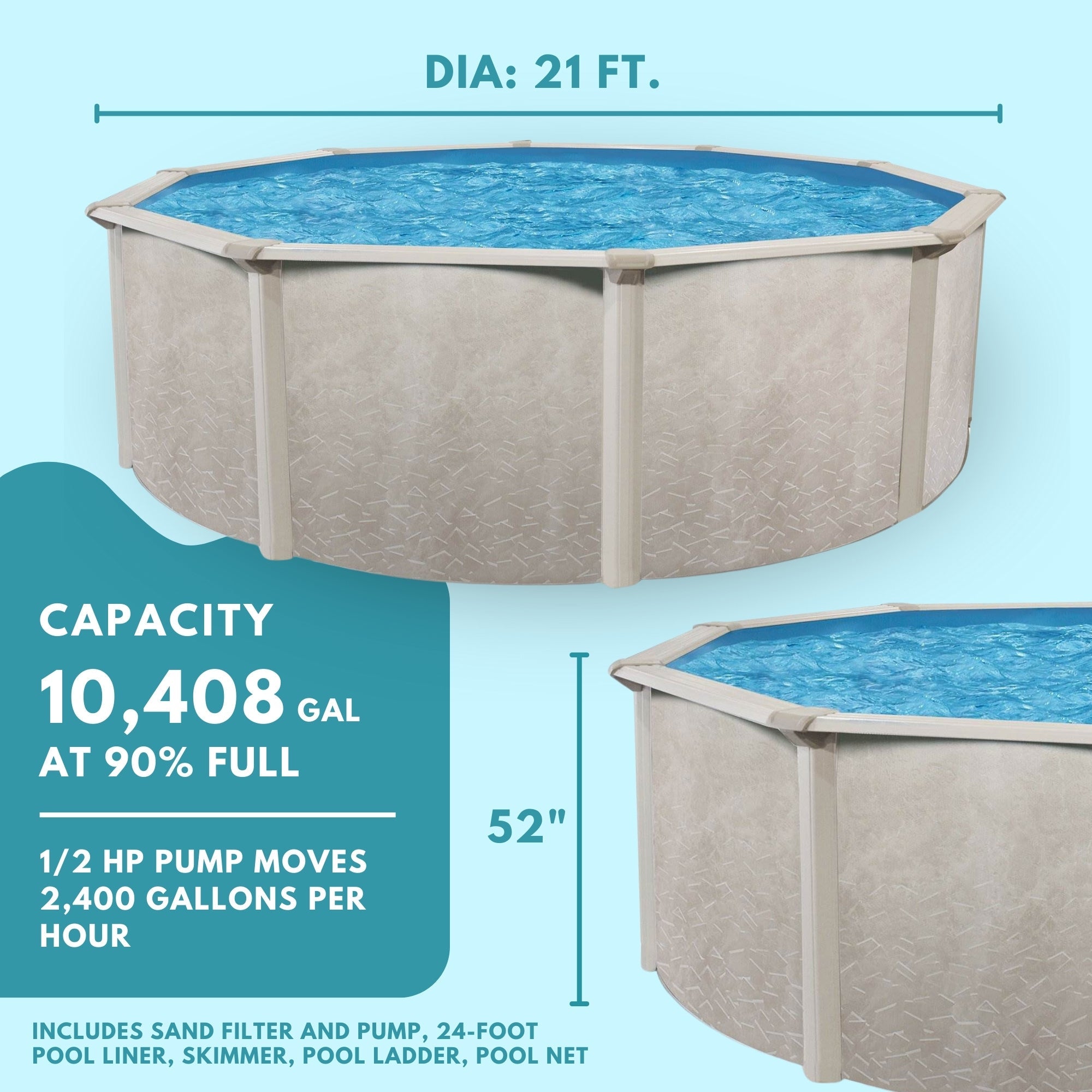 - Measures 21 feet in diameter and 52 inches high with A-frame pool ladder to help you get safely in and out