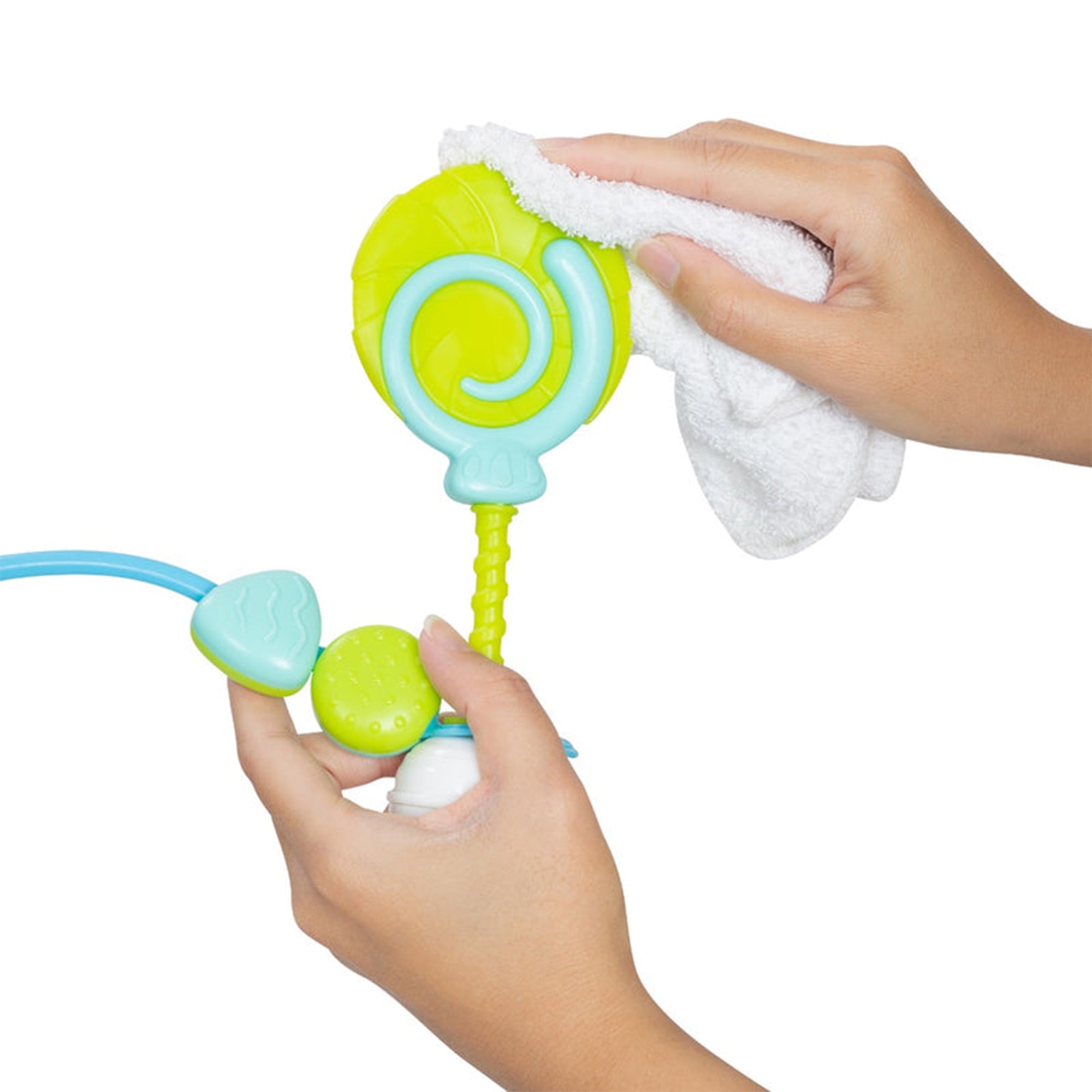 - Seat and toys easily wipe clean when needed