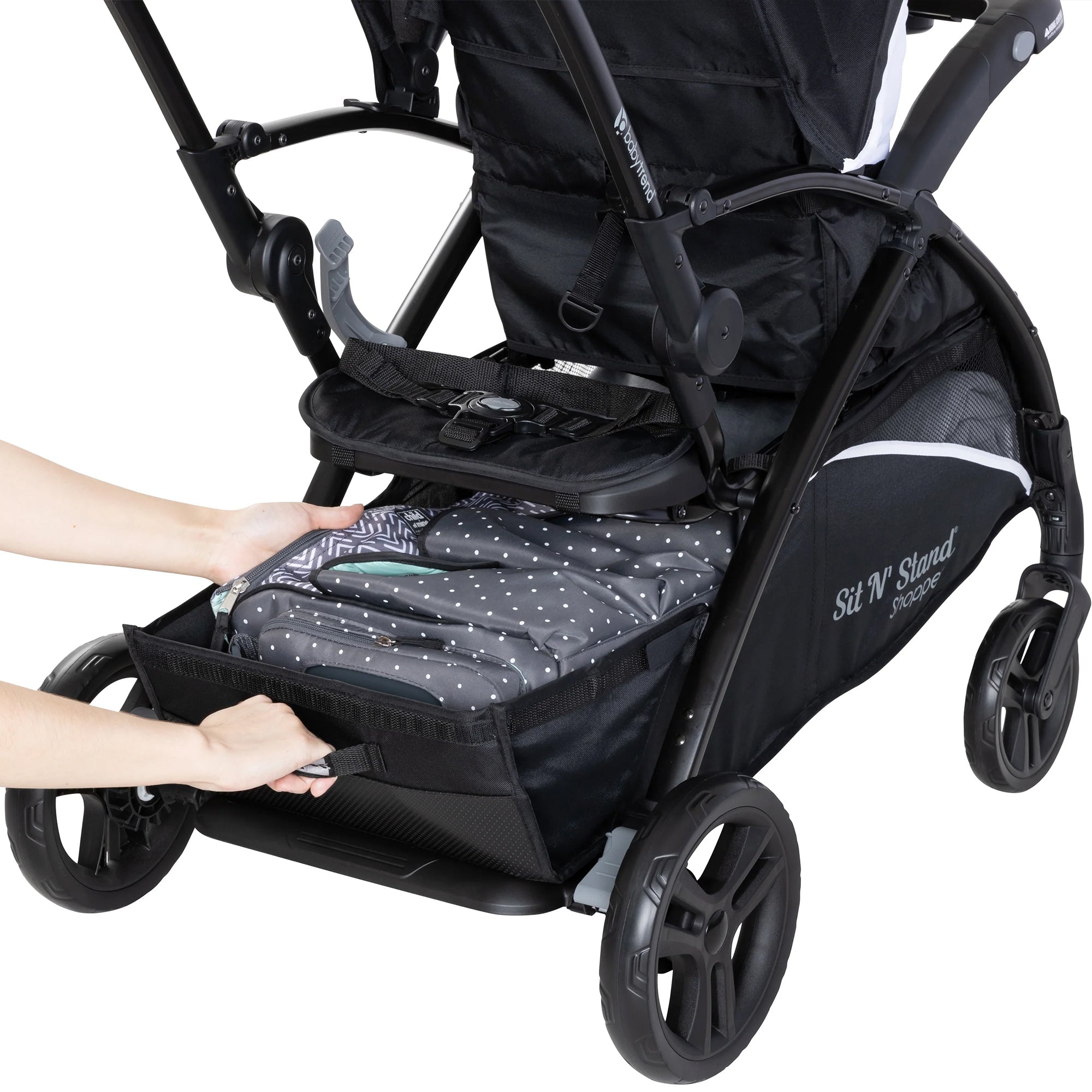 Versatile and practical, the Baby Trend Sit N' Stand 5-in-1 Shopper Stroller with Canopy and Basket is the ultimate solution for parents on the go. With its adaptable design, this buggy can be used in 5 different ways to accommodate your growing family's needs.