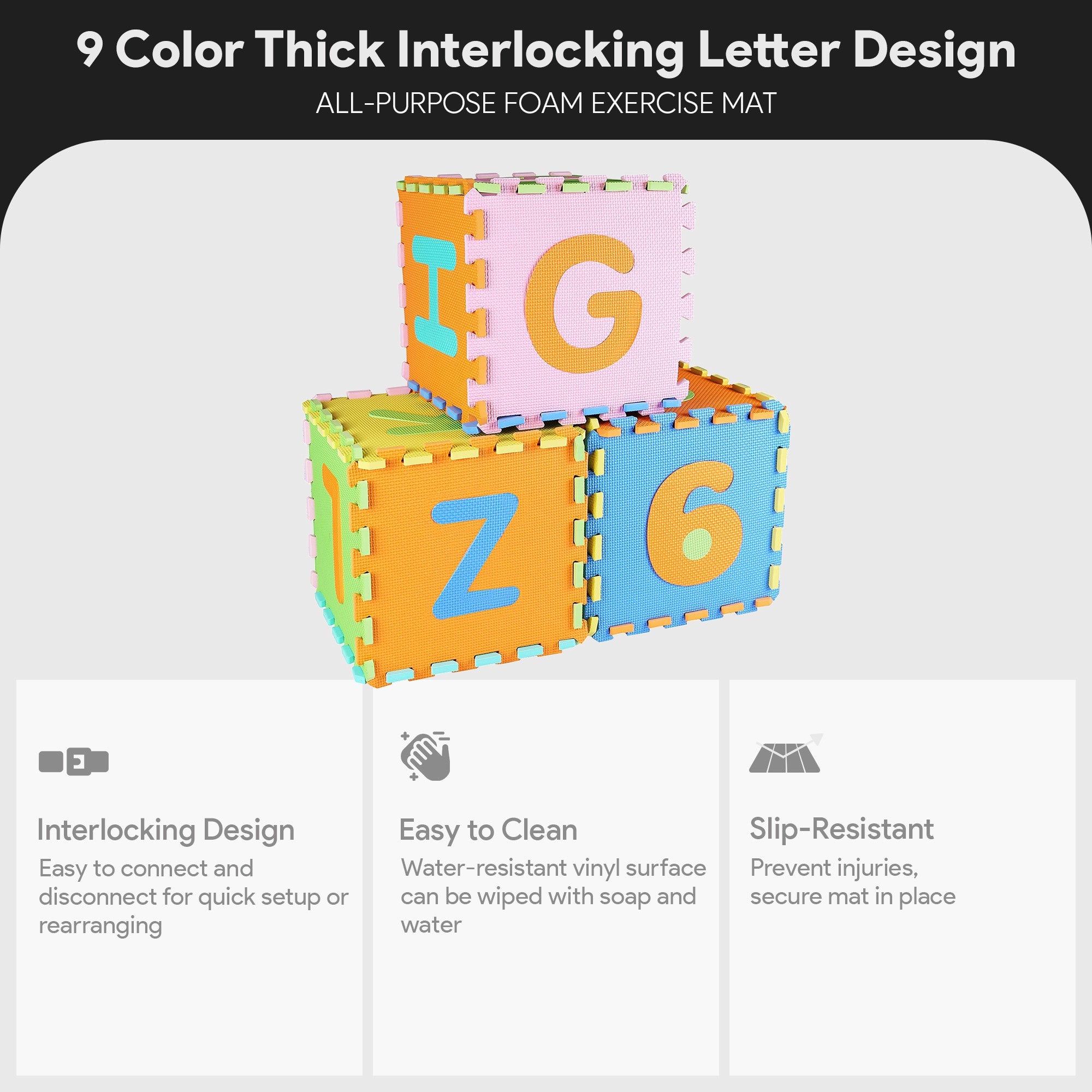 BalanceFrom 9 Color Thick Interlocking Letter Puzzle Foam Exercise Play Mats, 36