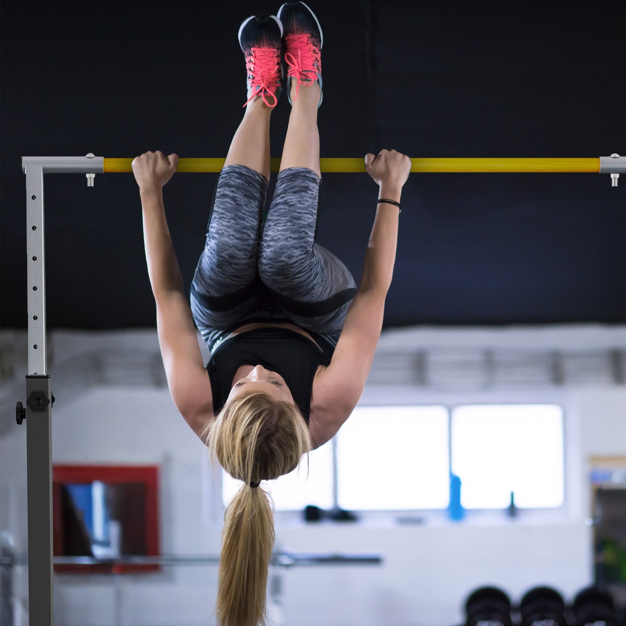 - Long 120 by 48-inch gymnastics mat and adjustable gymnastics bar, perfect for yoga, aerobics, pilates, martial arts, and gymnastics training