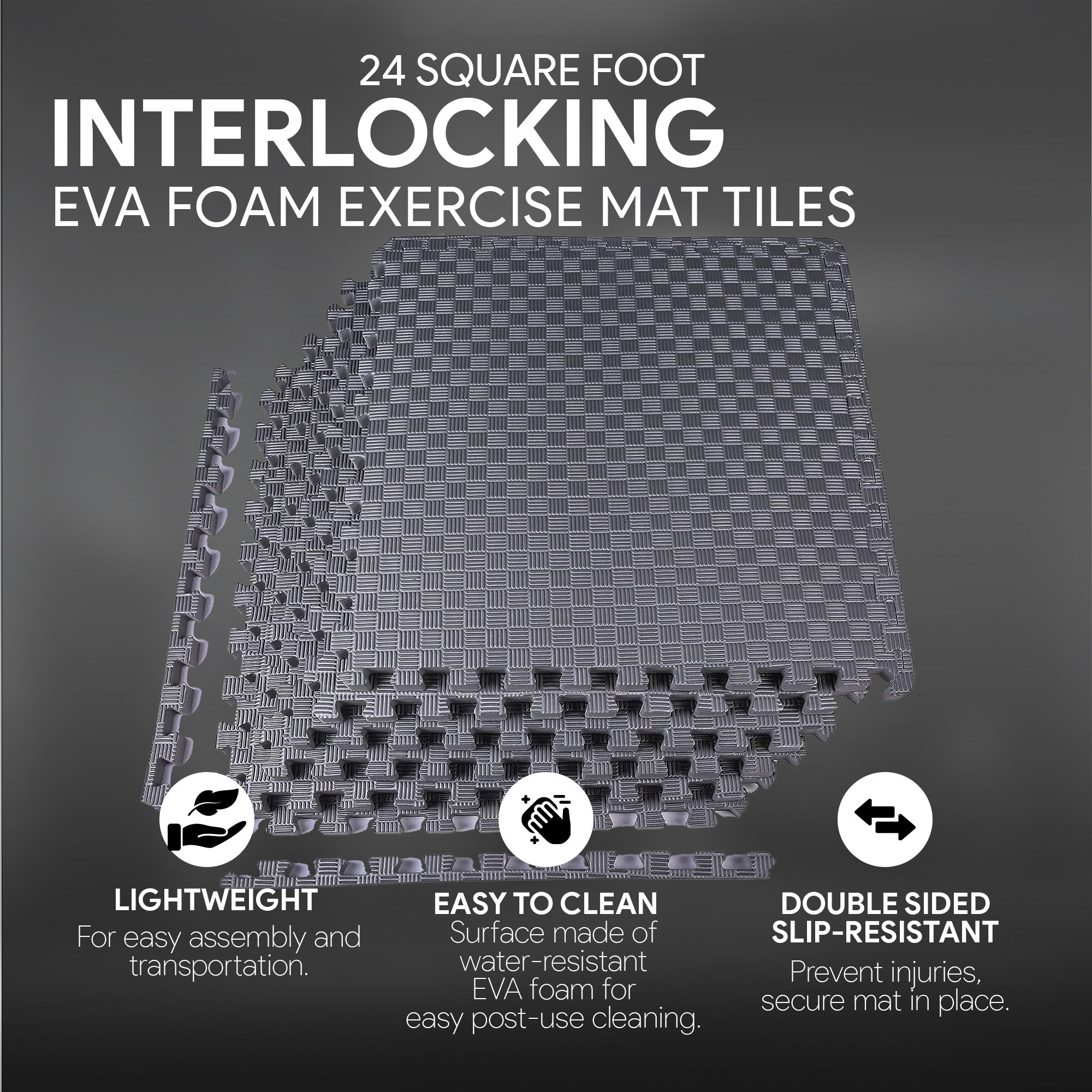 BalanceFrom Fitness 24 Sq Ft Interlocking EVA Foam Exercise Mat Tiles, Gray