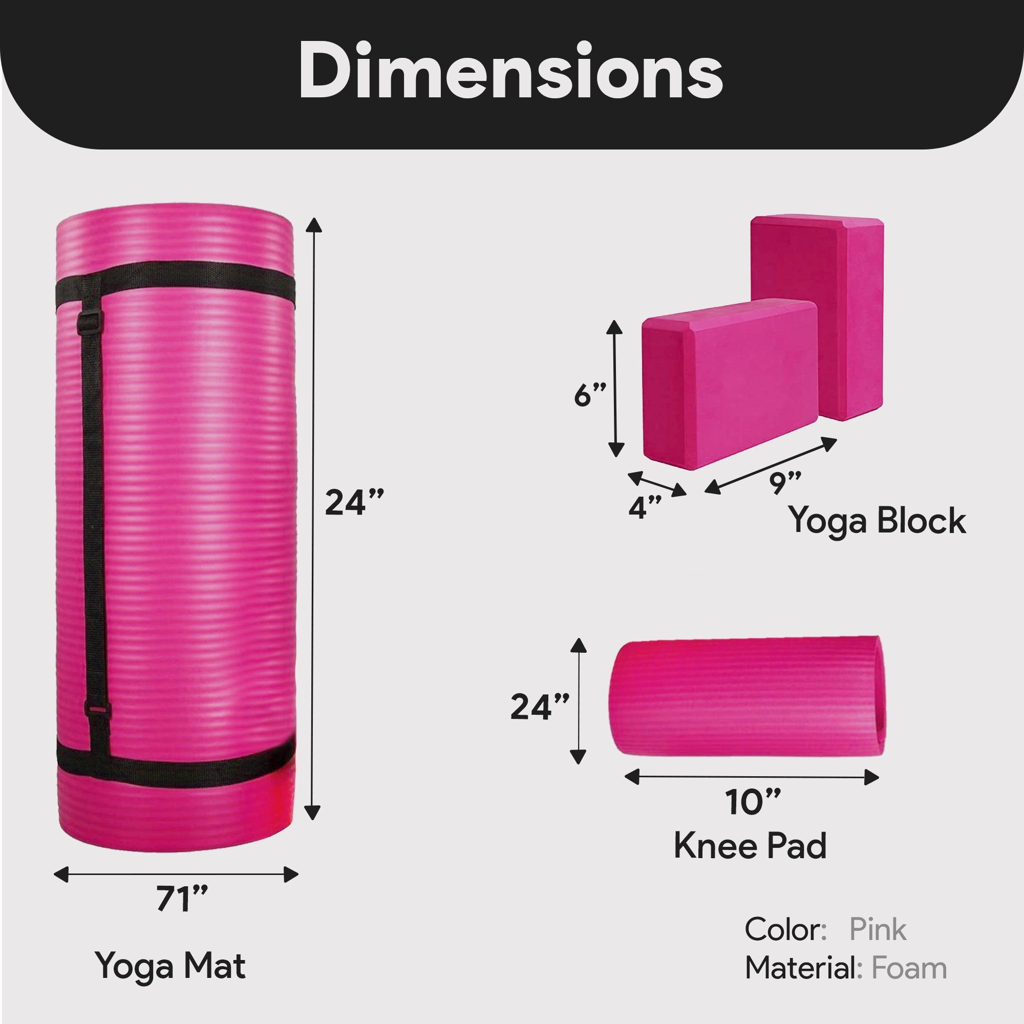The lightweight design and carrying strap make transporting this mat from the studio or gym to your home a breeze. Includes knee pad, with dimensions of 24 inches in width and 10 inches in length, boasts a thickness of 3/5 inches, covering your joints in plush relaxation during strenuous routines. It also comes with 2 yoga blocks sculpted from high-density, robust foam to withstand the tests of time.
