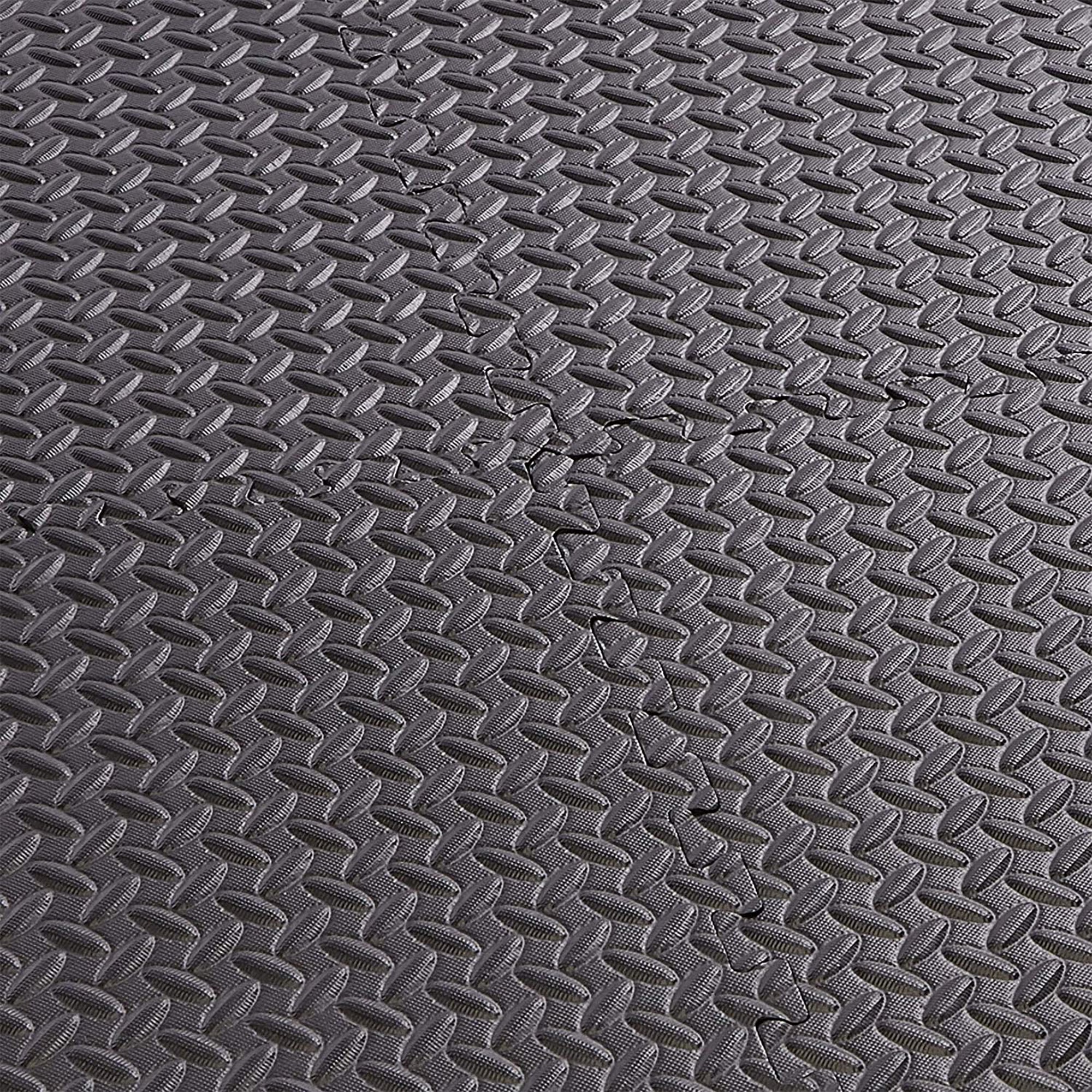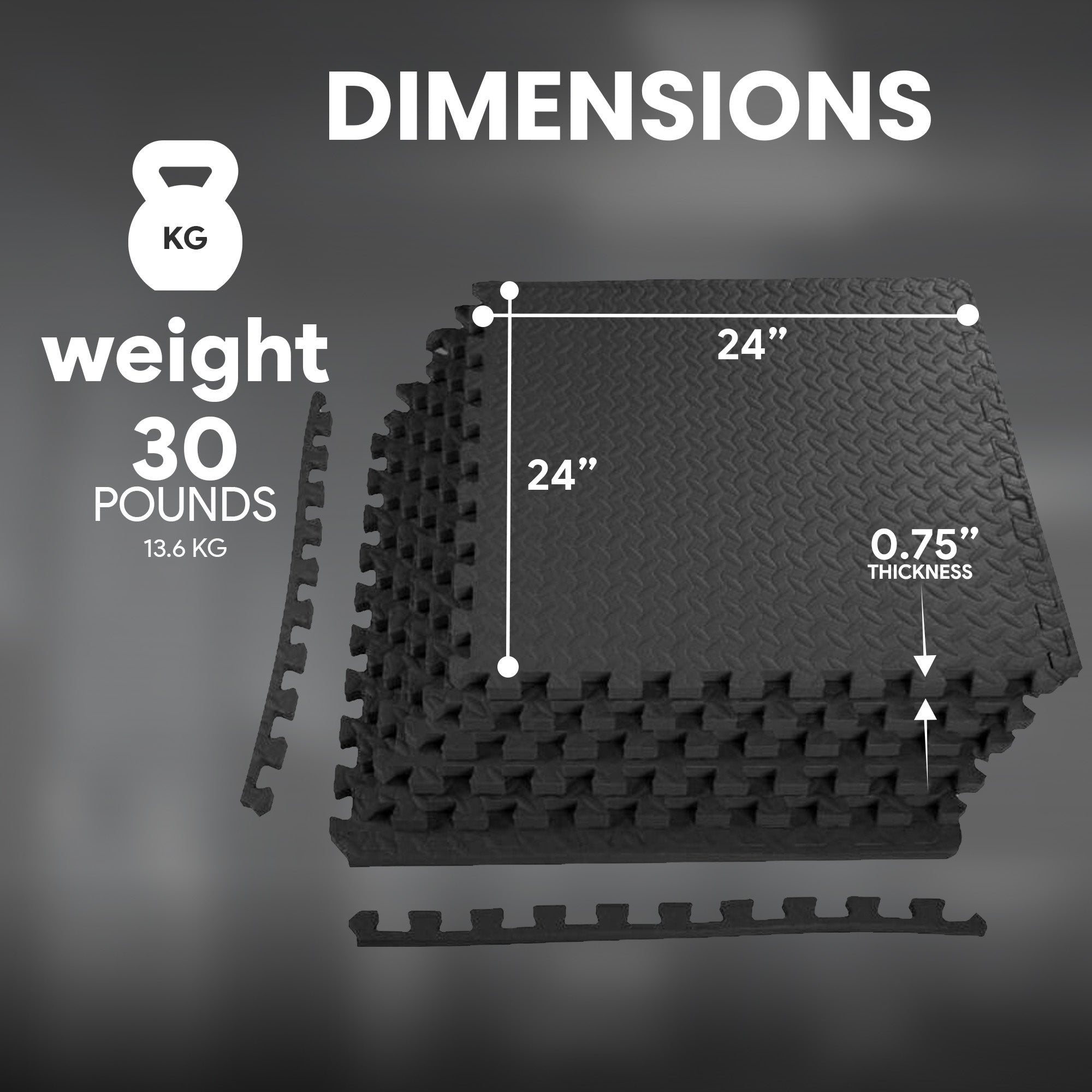 - 24 24 x 24-inch foam exercise tiles with interlocking edges and 48 end borders for 96 square feet of durable support in your home, gym, or daycare