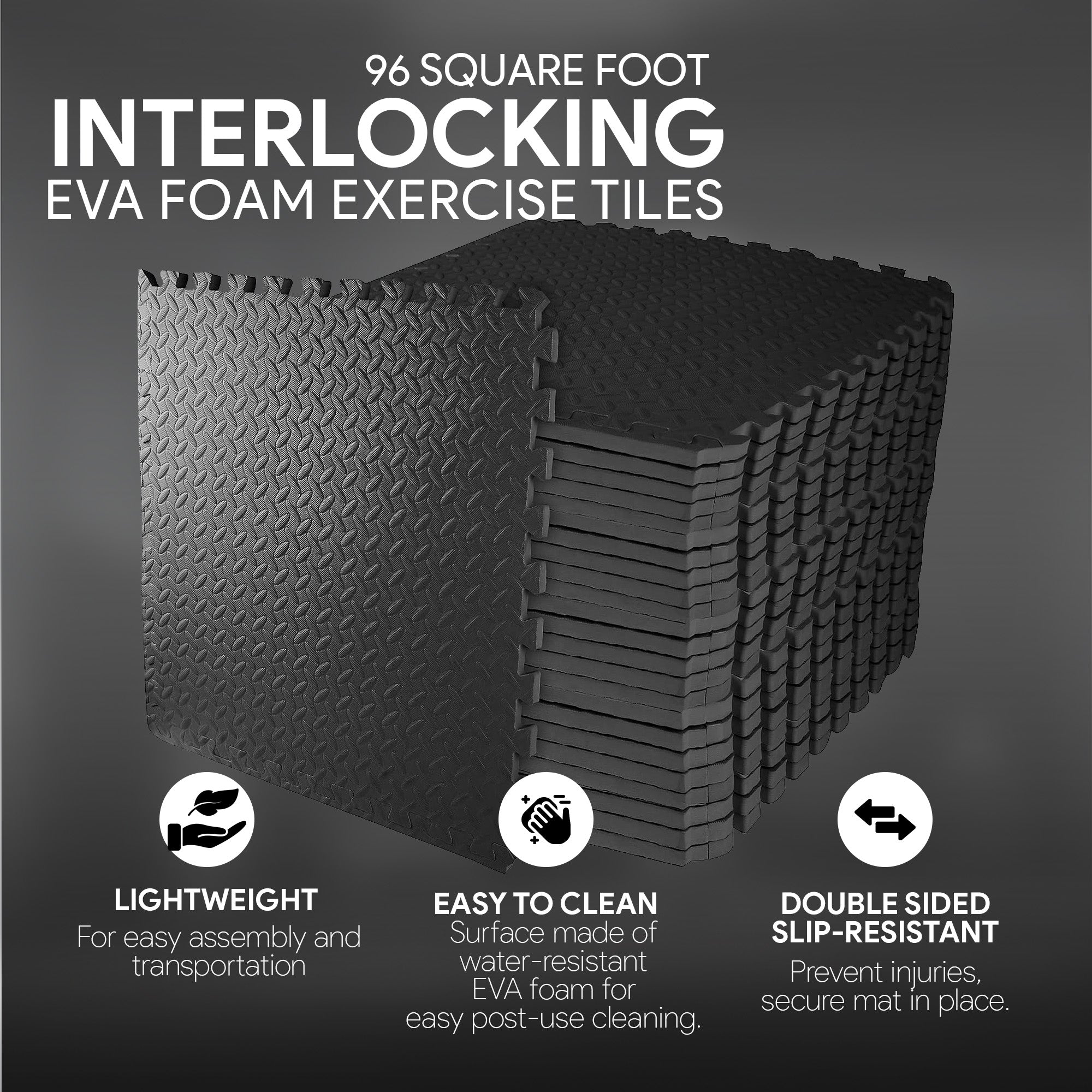 BalanceFrom Fitness 96 Sq Ft Interlocking EVA Foam Exercise Mat Tiles, Black