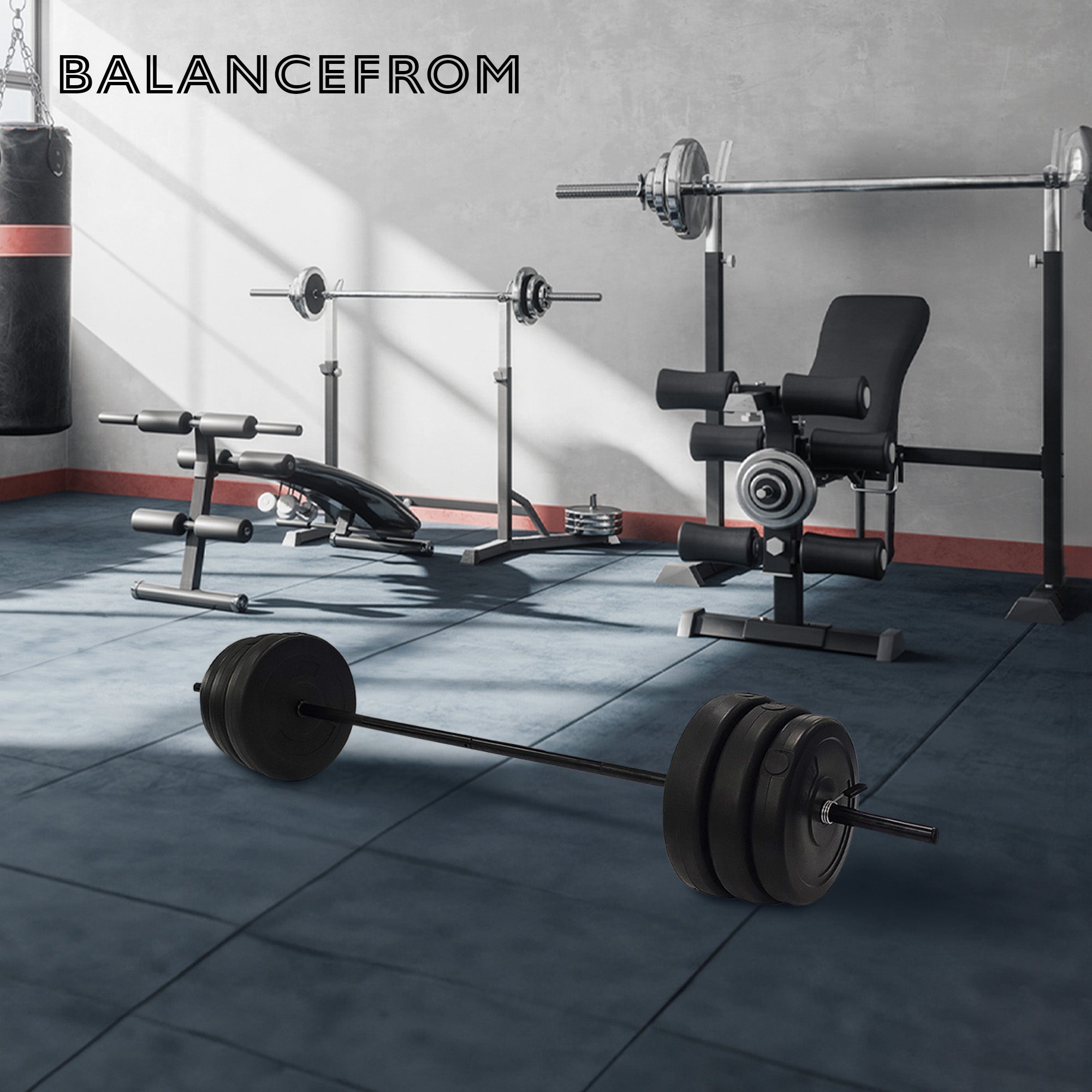 BalanceFrom Fitness Home Gym Steel Barbell Vinyl Weight Lifting Set, 100 Pounds