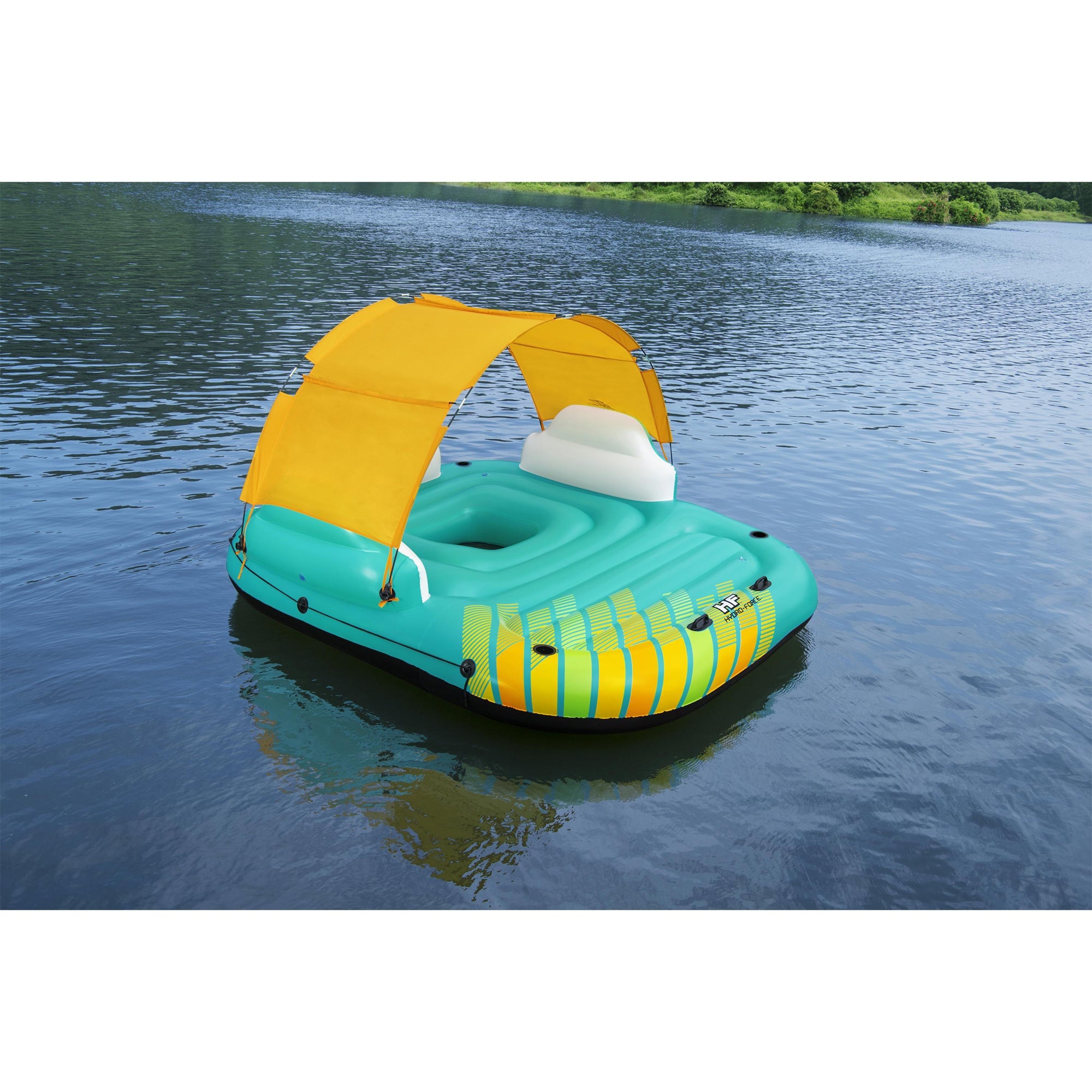 Relax on the water and float for days while getting your tan on with the Hydro-Force Sunny Lounger 5-Person Inflatable Island Floating Water Raft from Bestway.