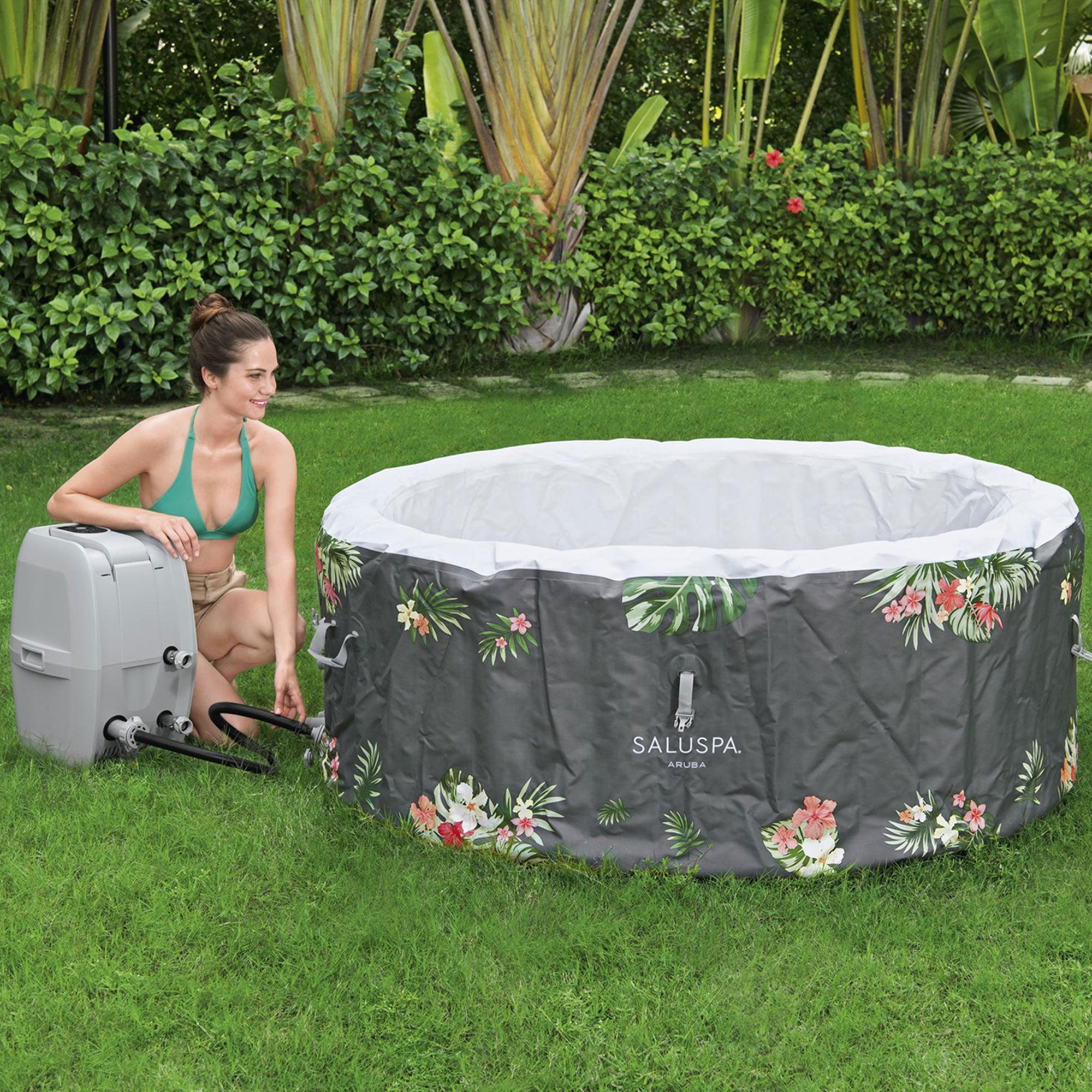 Nothing quite compares to the calming embrace of warm, bubbly waters in your backyard after a long day. The ideal haven of calm is always close at hand with the SaluSpa Aruba Inflatable Spa by Bestway.