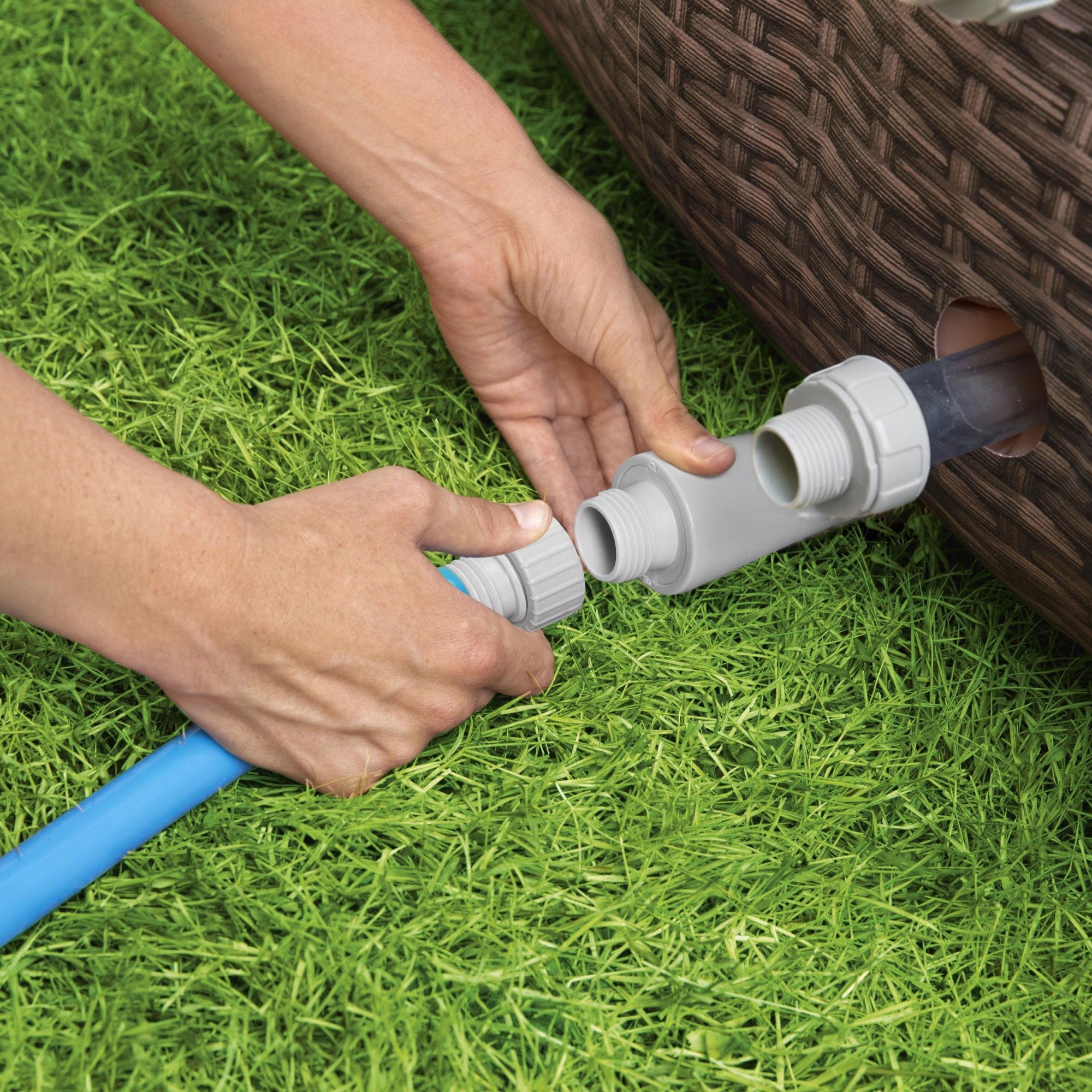 • Easy to set up by threading the fiberglass poles through the canopy fabric and snap into place using the clips on the sides of your Bestway hot tub