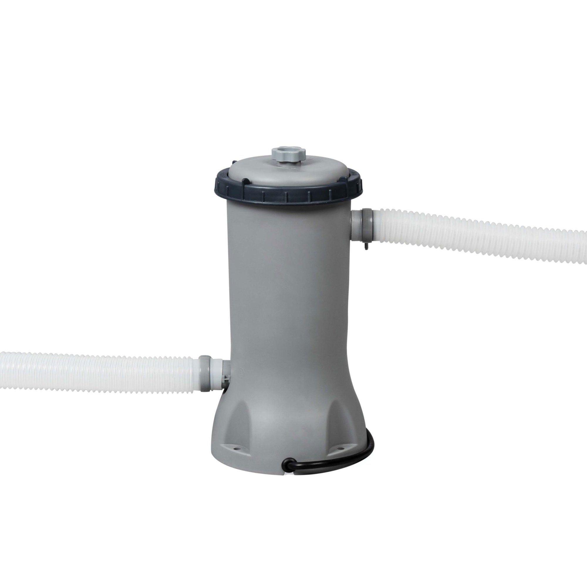 The Tri-Tech liner features a 3-layer material design to offer added strength and resistance to punctures over standard PVC liners. This pool kit includes a removable canopy, 530-gallon filter pump, (1) Type III A/C filter cartridge, a pool ladder, and cover. Designed with practicality, the pool accommodates additional attachments like cup holders (sold separately), enhancing the poolside experience for adults and kids alike.