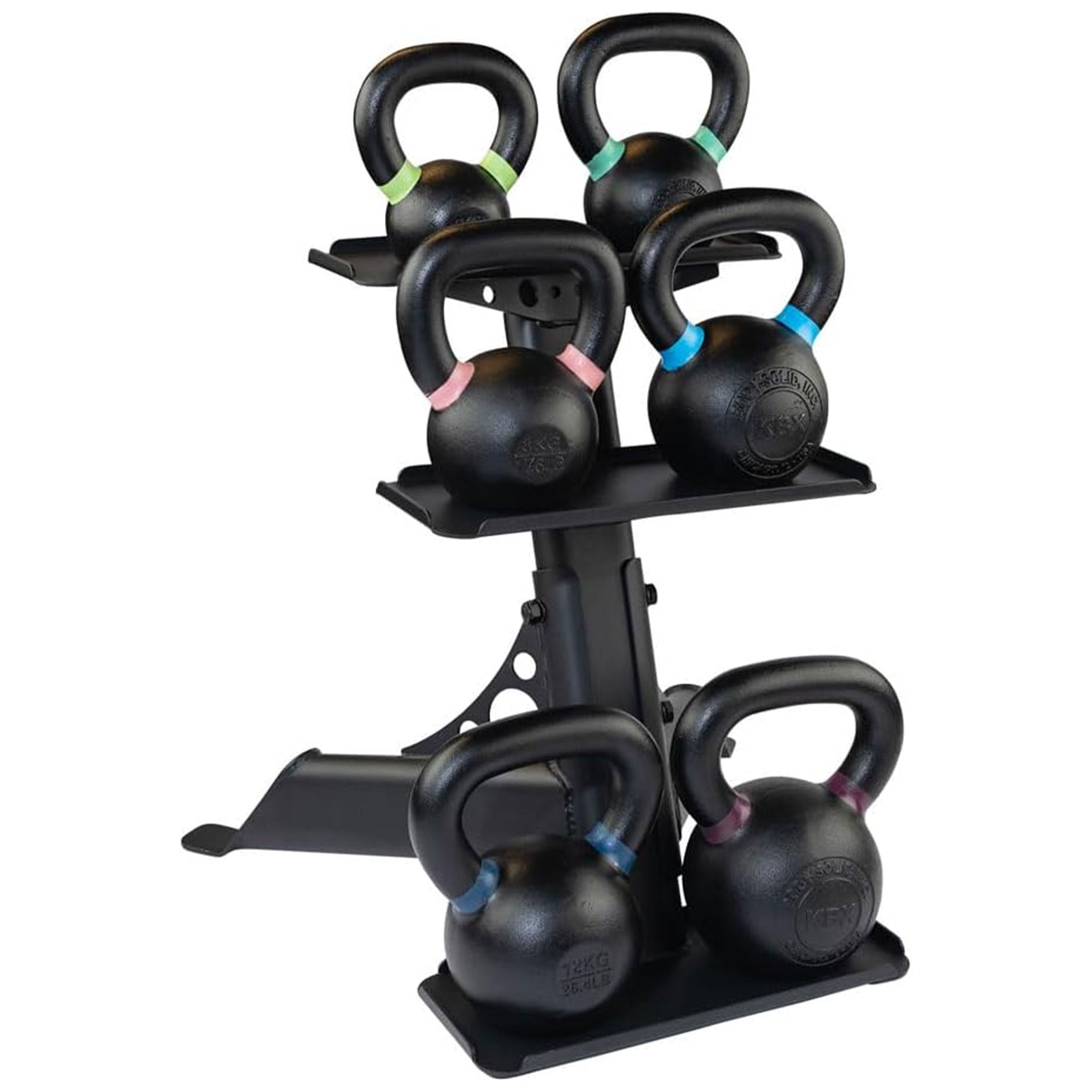 - Securely store up to 6 kettlebells of any size from 5 to 50 pounds max while optimizing space in your fitness area
