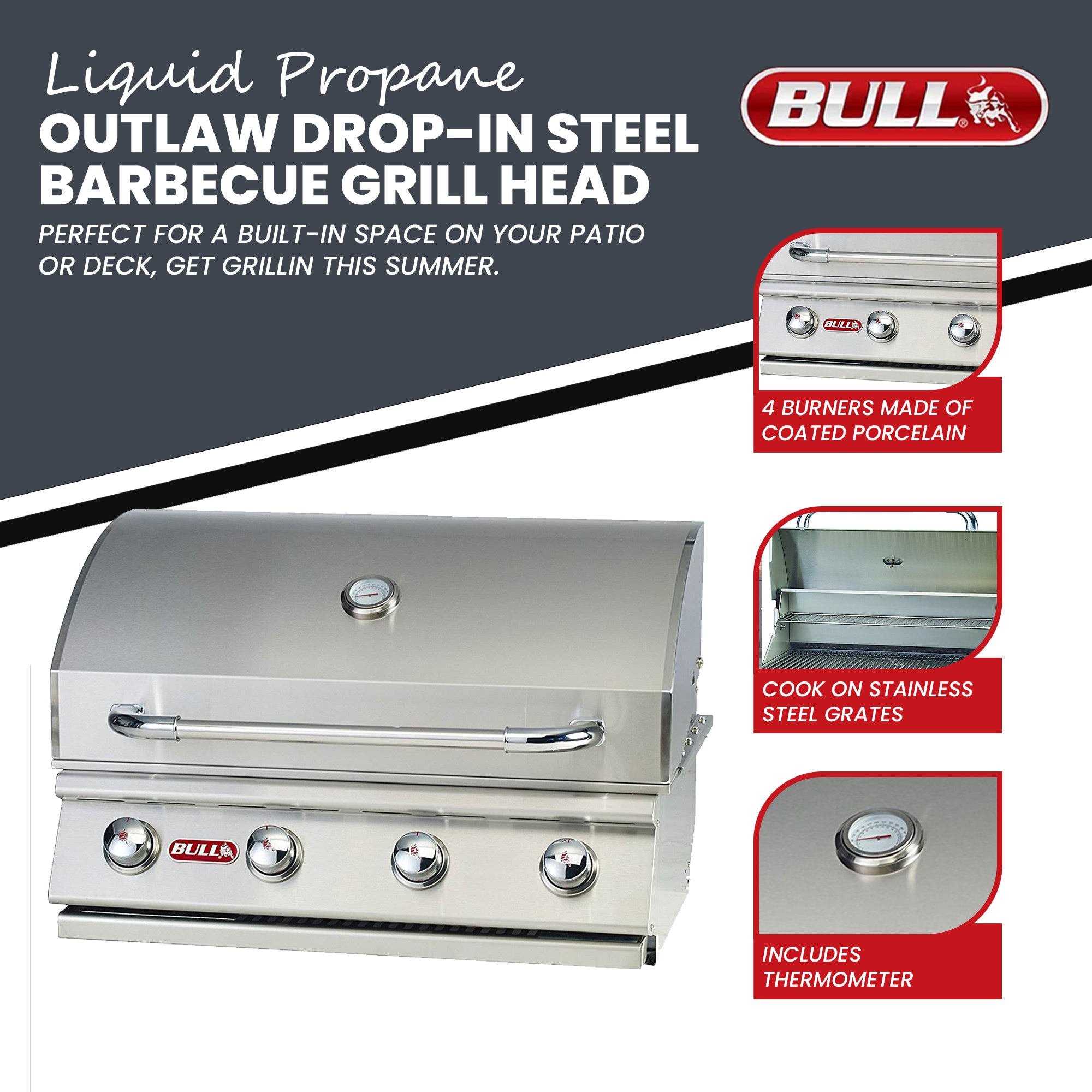 Bull Outdoor Products Liquid Propane Outlaw Drop-In Steel Barbecue Grill Head