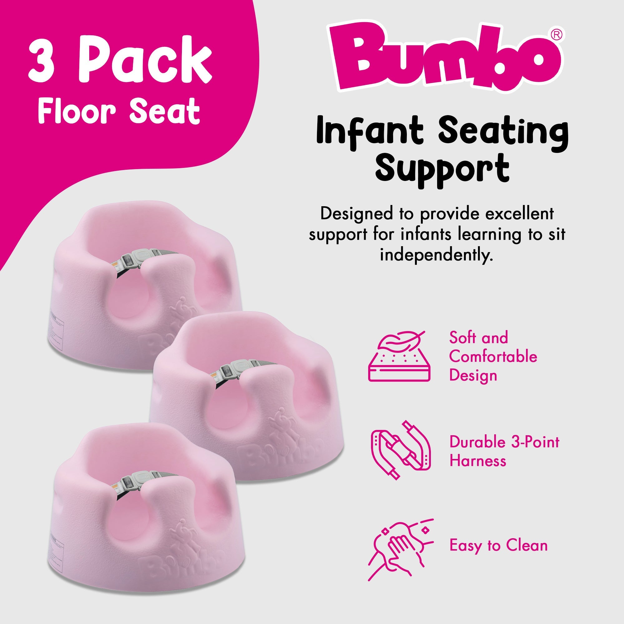 Bumbo Baby Soft Foam Wide Floor Seat w/3 Point Adjustable Harness, 3 Pack, Pink