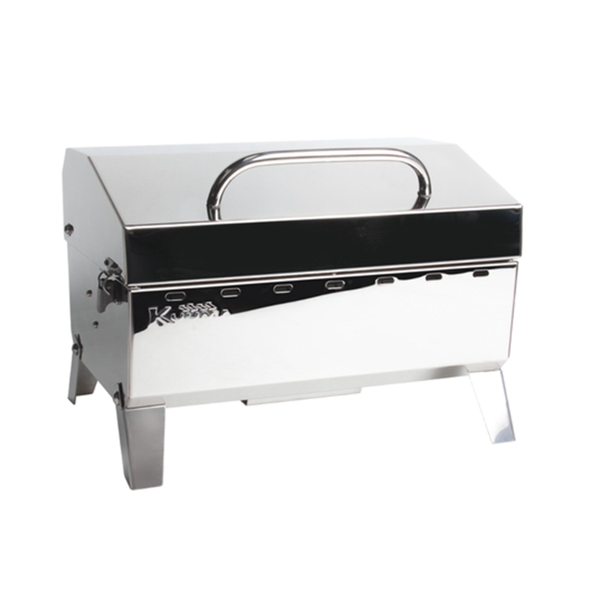 Experience exceptional grilling performance with the Camco Kuuma Stow N' Go 125 Stainless Steel Gas Grill with Pedestal Mount in Silver.