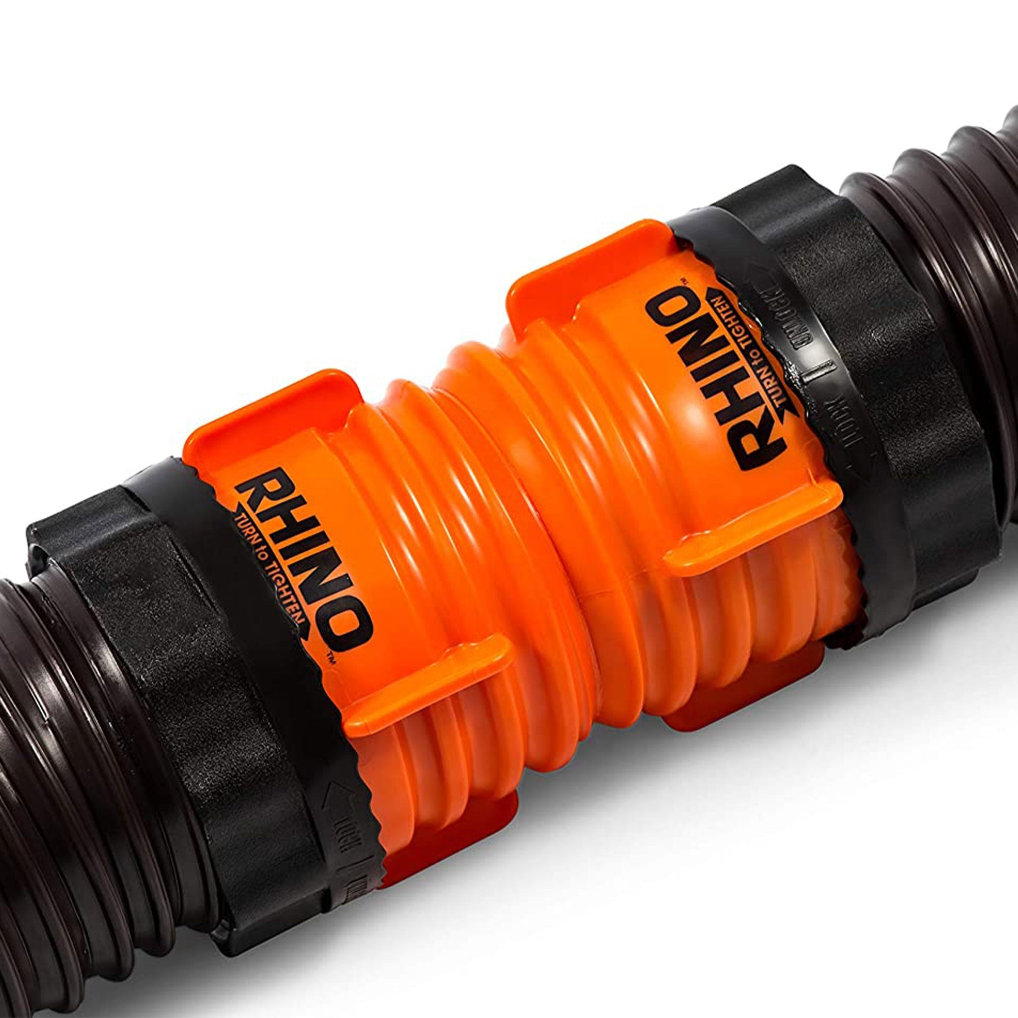 - Hose coupler connects 2 RhinoFLEX sewer hoses to ensure a tight and leak-proof hose connection; RhinoFLEX hoses sold separately