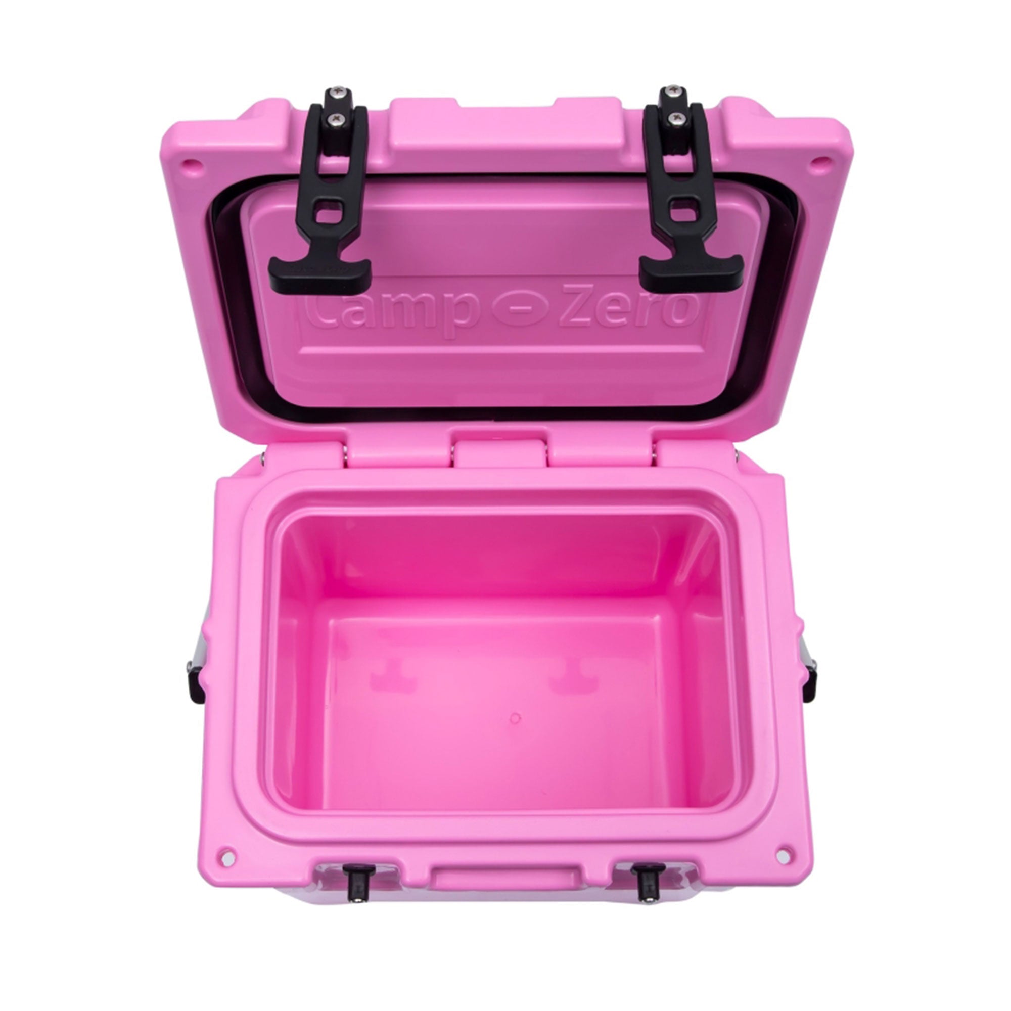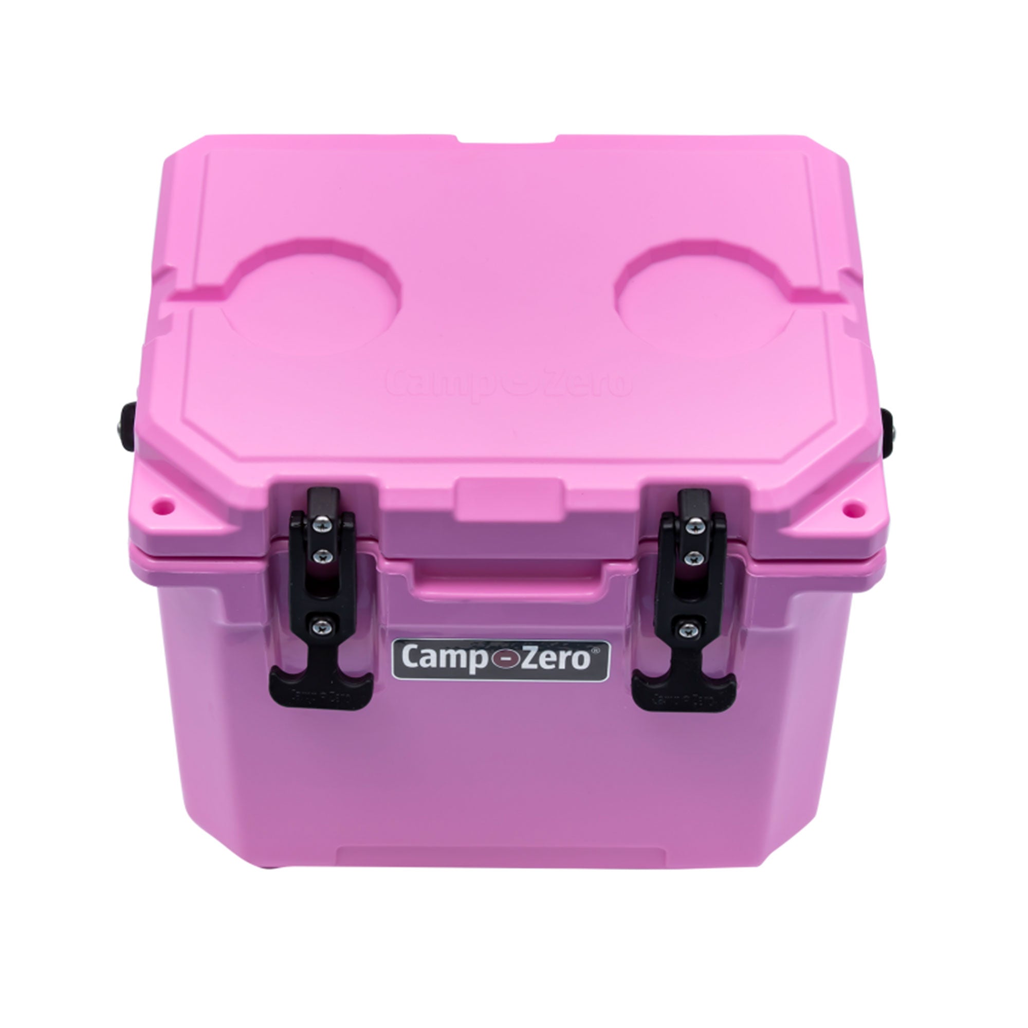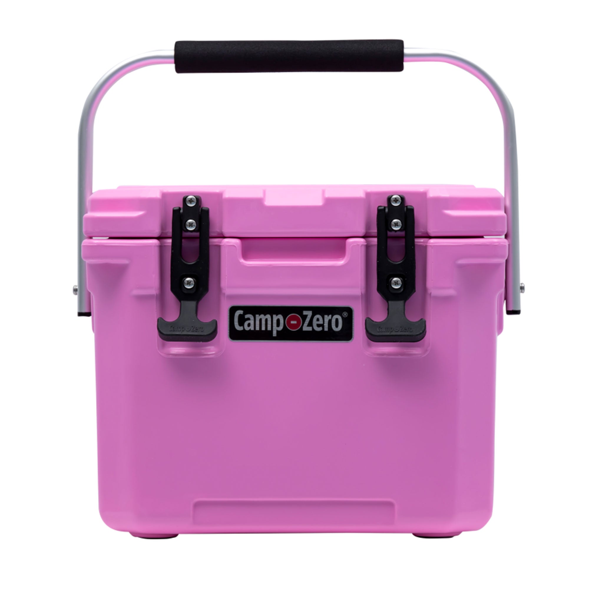 CAMP-ZERO 10 Liter 10.6 Quart Lidded Cooler with 2 Molded In Cup Holders, Pink
