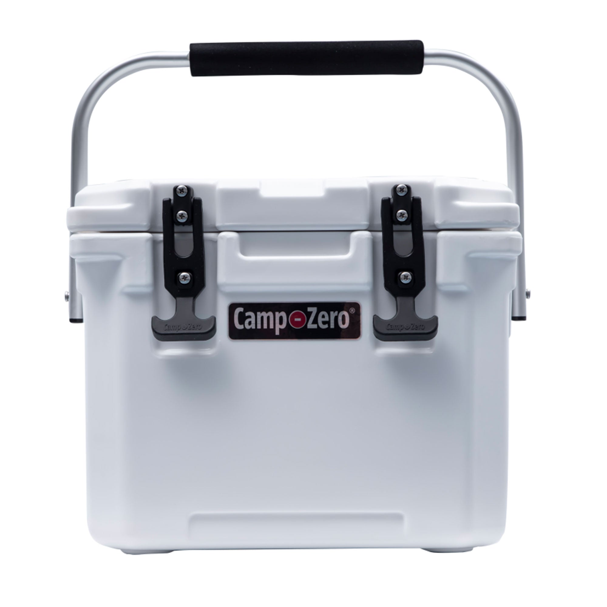 CAMP-ZERO 10 Liter 10.6 Quart Lidded Cooler with 2 Molded In Cup Holders, White