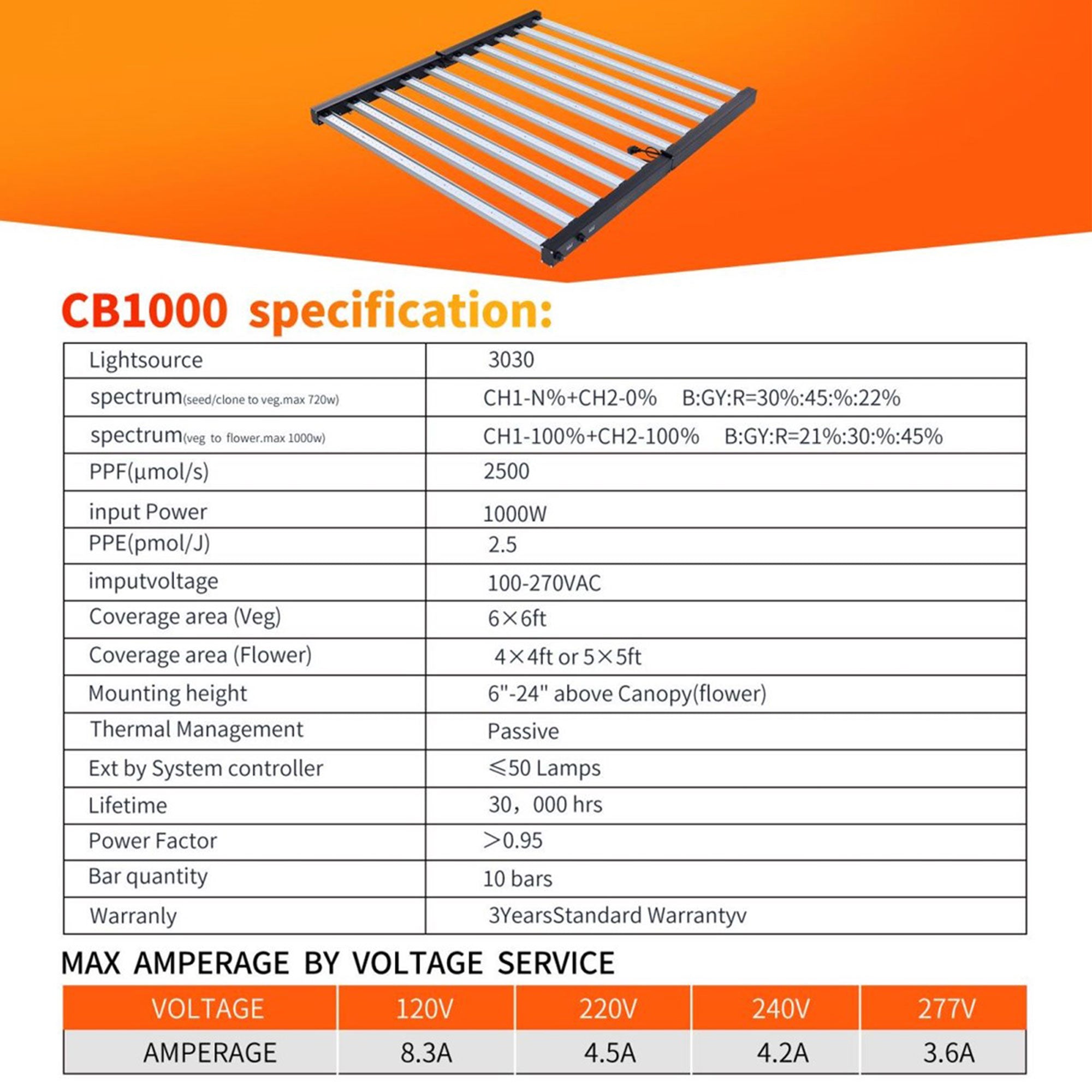 - Provides plants with more light at 2,500 micromoles per second while saving up to 40-percent on energy usage